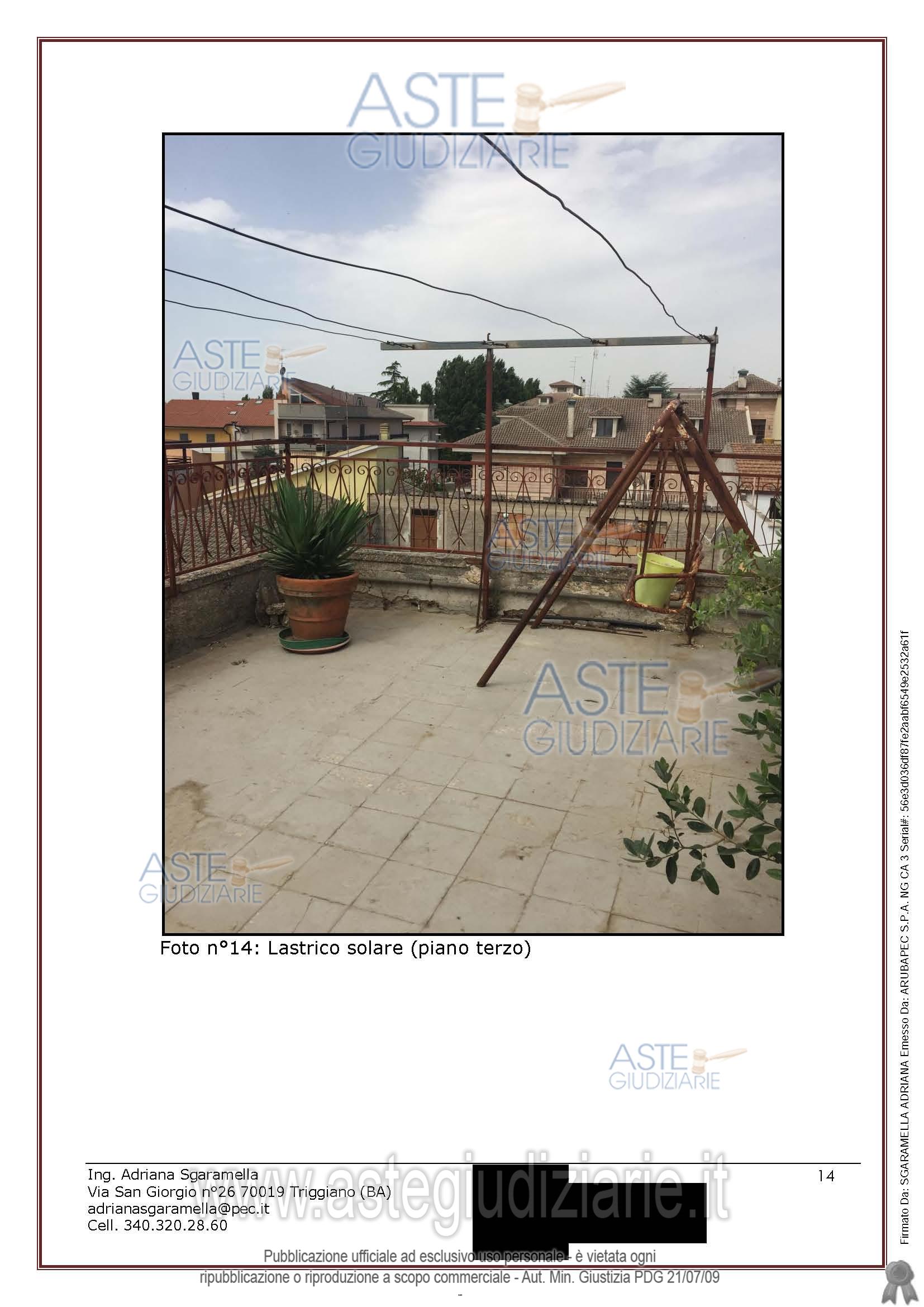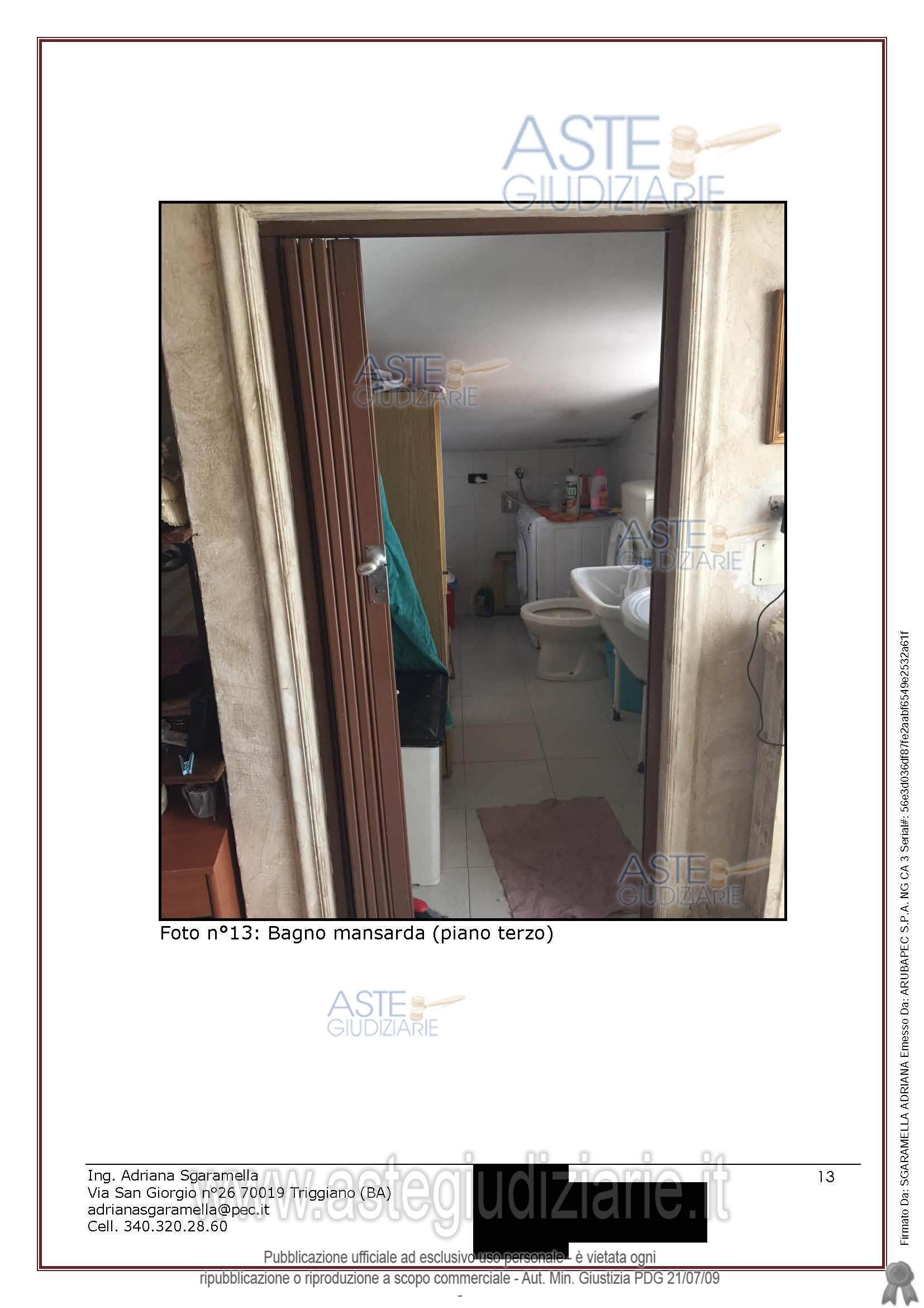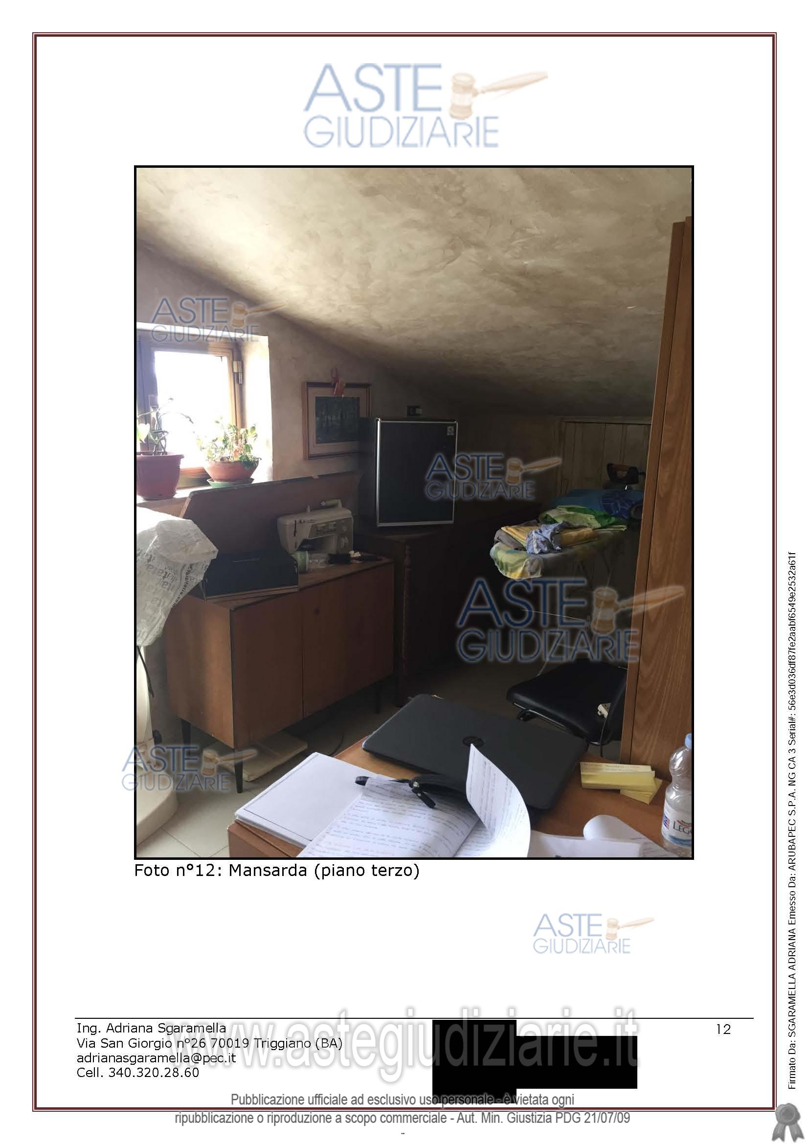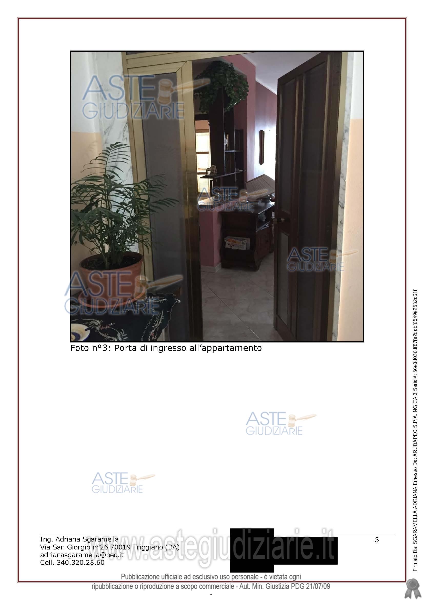 Vendita all'asta Senza incanto, con gara telematica asincrona - LOTTO 1: Abitazione composta da cucina soggiorno tipo open-space, due camere da letto e bagno, dotata di due balconi con affaccio sulla via Pisani e sulla via Laterza; l'immobile si completa di una mansarda ubicata al piano terzo, censita come deposito, cui si accede dallo stesso vano scala che permette l'ingresso all'abitazione. Inoltre è pertinenziale del deposito una porzione di lastrico solare. Prezzo base € 53.630,00 (offerta minima € 40.223,00). Data inizio operazioni di vendita: 12/03/2026 ore 11:00. Giudice Dott. Marina Cavallo. Professionista delegato alla vendita Avv. Maria Stella Tritto - Email "stellatritto@libero.it". Custode Giudiziario Avv. Maria Stella Tritto - Email "stellatritto@libero.it". Rif. Tribunale di Bari - Esecuzione immobiliare post legge 80 n. 98/2017
