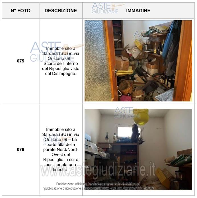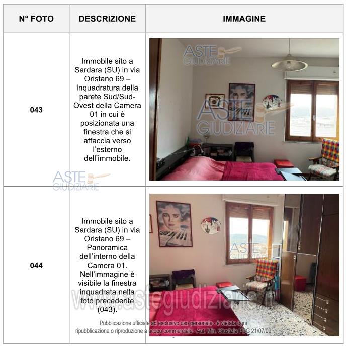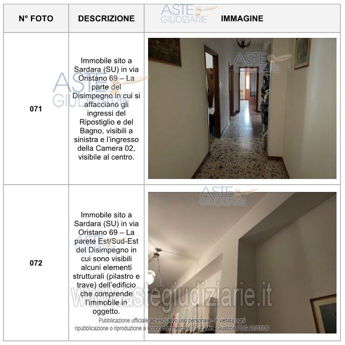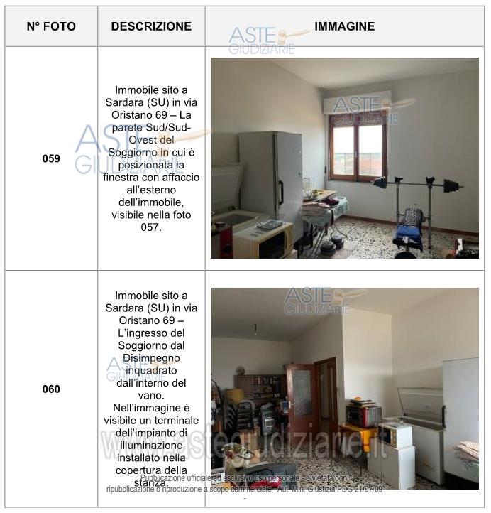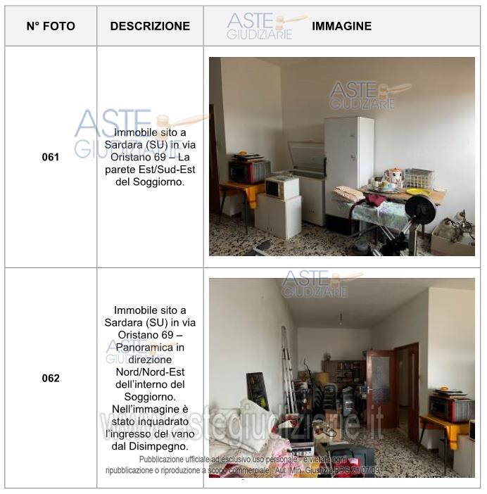 Vendita all'asta Senza incanto, con gara telematica asincrona - LOTTO UNICO: Abitazione civile sita in Sardara (SU), nella via Oristano n. 69, P1, cat. a/2, vani 6,5, sup 163 mq, composta da disimpegno, cucina, soggiorno, n. 3 camere, bagno, locale di sgombero, terrazzo e balcone. Prezzo base € 54.720,00 (offerta minima € 41.040,00). Data inizio operazioni di vendita: 12/05/2026 ore 15:00. Professionista delegato alla vendita Avv. Laura Satta - Email "avv.laurasatta@gmail.com"; Tel. 3461498416. Custode Giudiziario Di Cagliari Istituto Vendite Giudiziarie - Email "ivg.visiteimmobili@tiscali.it"; Tel. 0702299036. Rif. Tribunale di Cagliari - Espropriazione immobiliare (cartabia) n. 61/2024