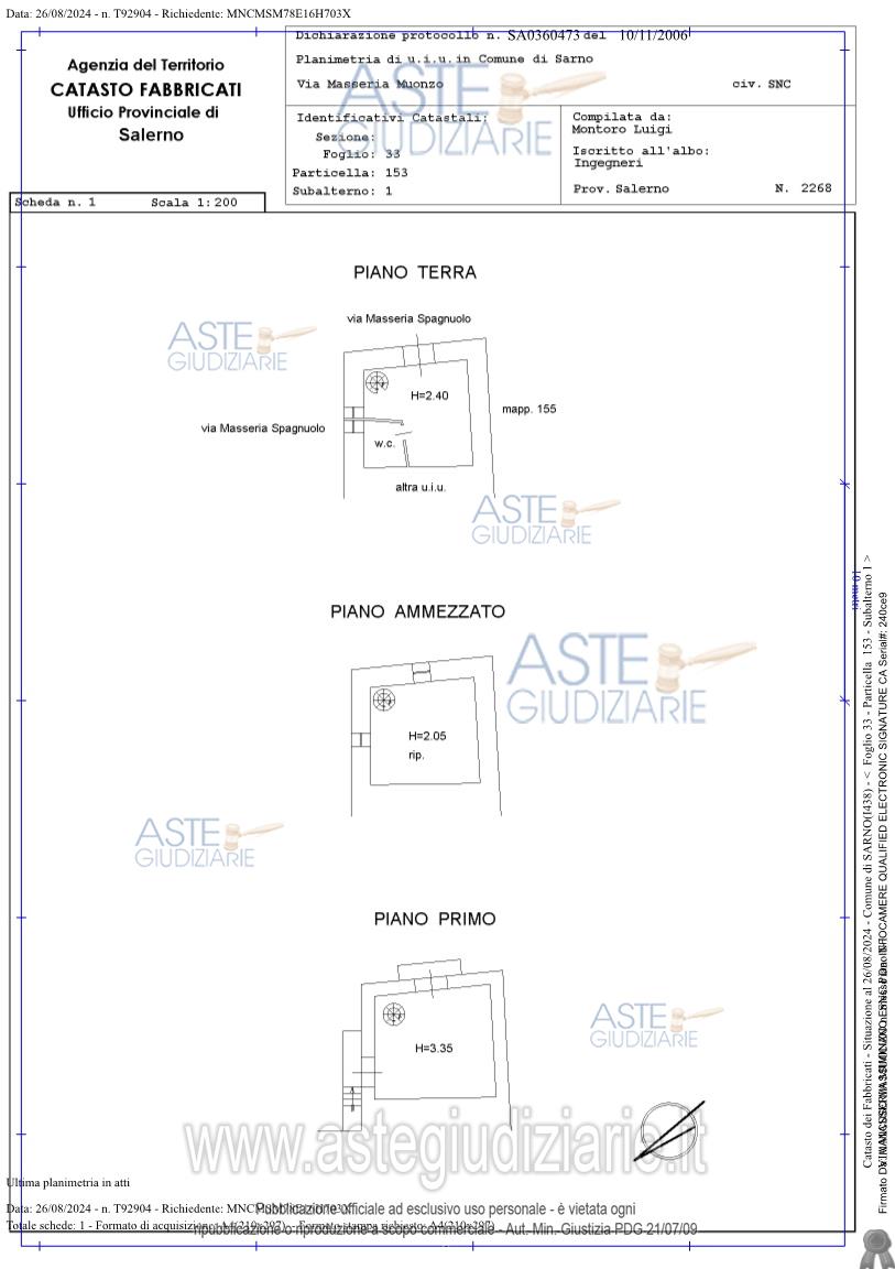 Custode Giudiziario: Avv. Armando Petrosino - Email "petrosinoarmando@gmail.com".