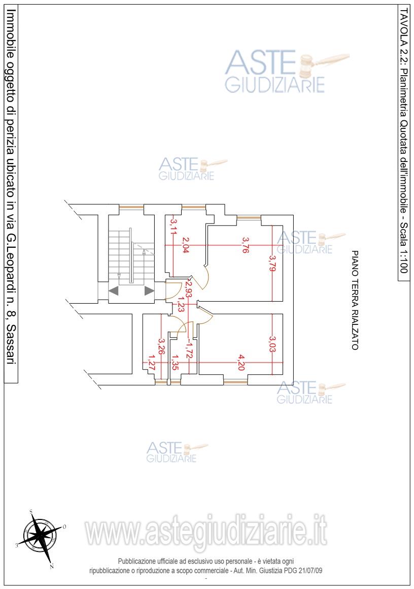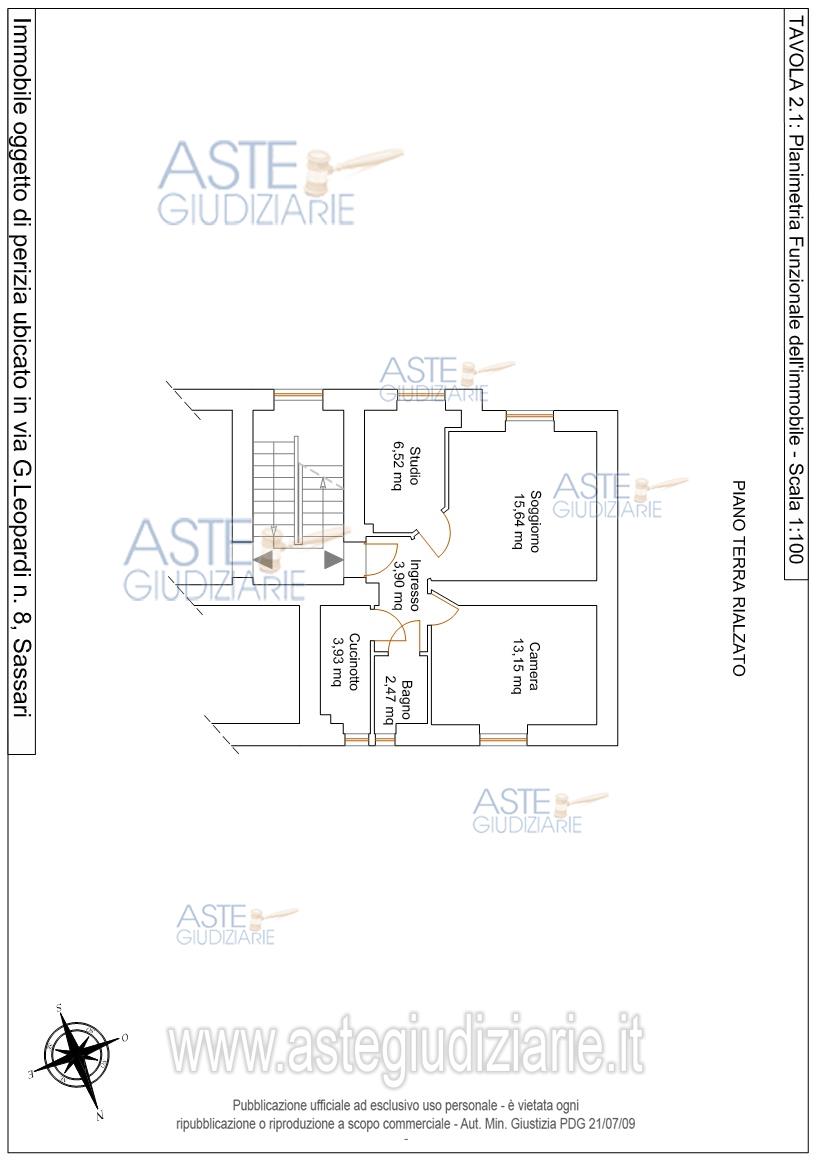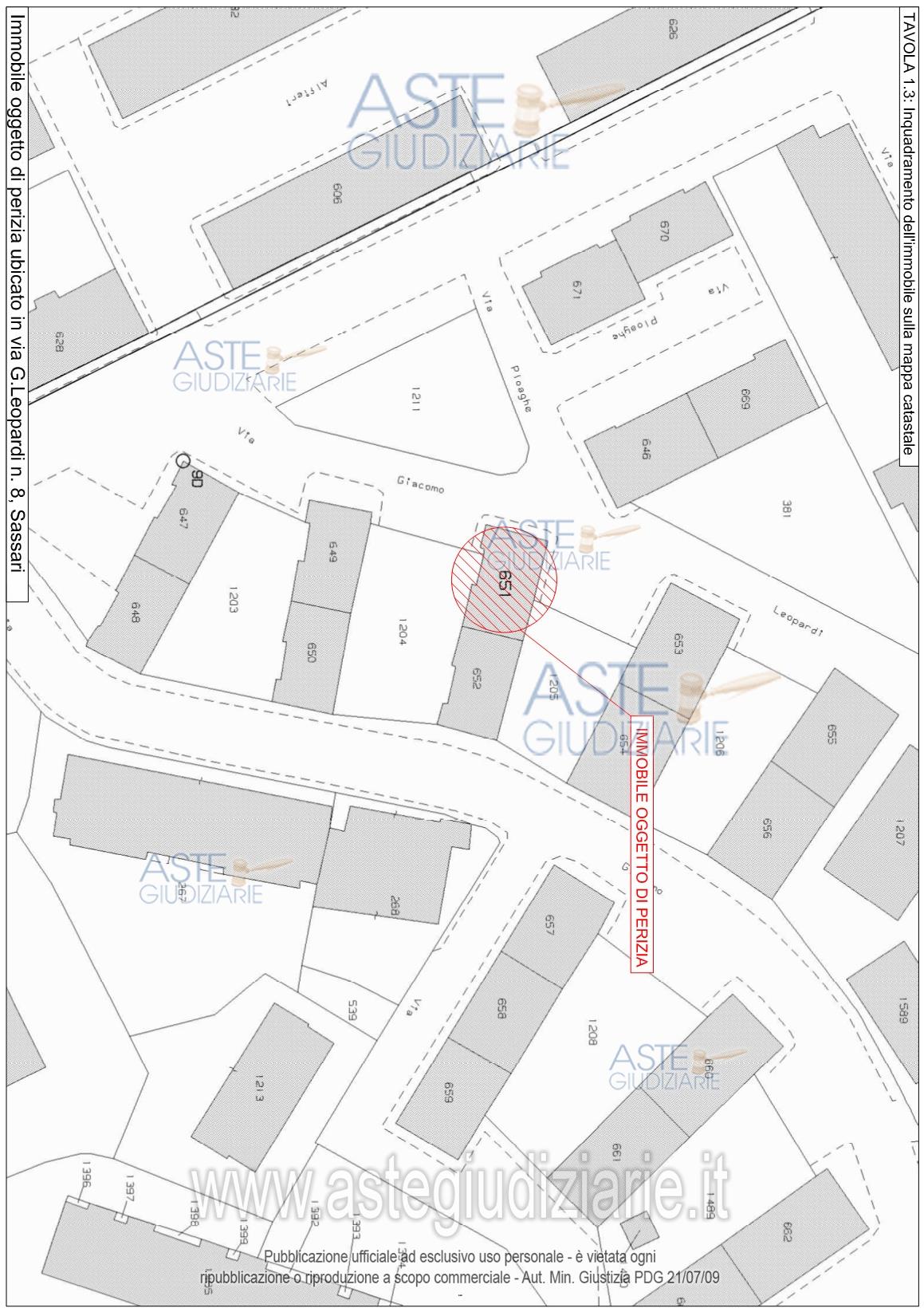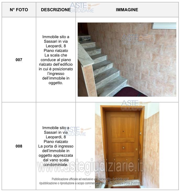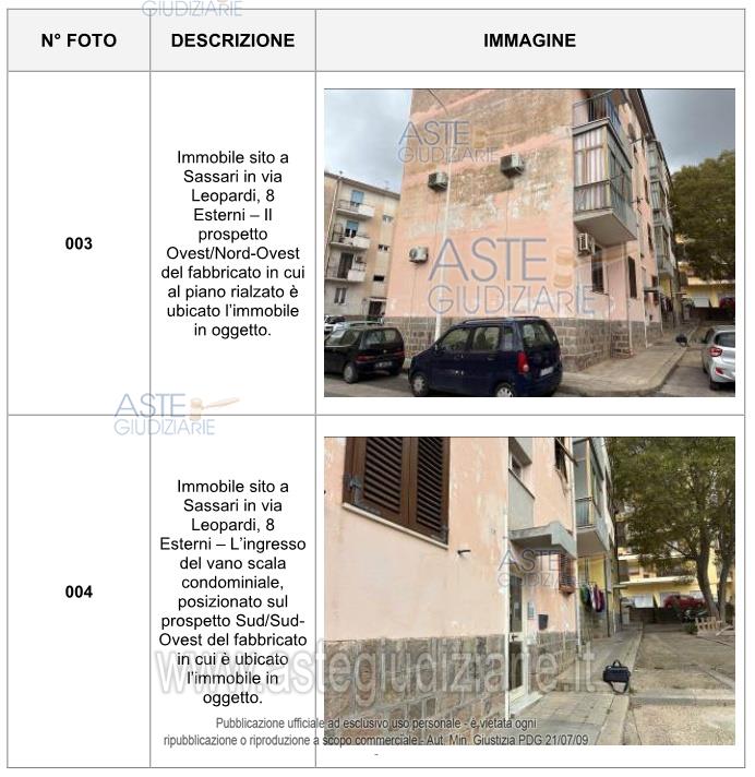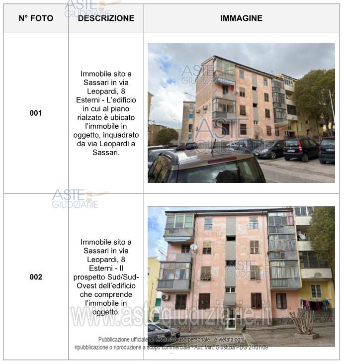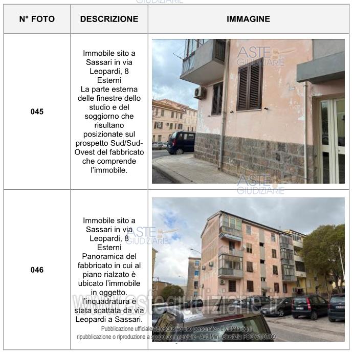 Vendita all'asta Senza incanto - LOTTO UNICO: Appartamento in Sassari, via Giacomo Leopardi n. 8, censito al N.C.E.U. del Comune di Sassari al foglio 72 particella 651, subalterno 1, categoria A/4, classe 3, consistenza 4 vani. L’immobile è ubicato al piano terra rialzato, è formato da un ingresso, uno studio, un soggiorno, una camera, un bagno e un cucinotto per una superficie complessiva di 62 mq. Prezzo base € 30.000,00 (offerta minima € 30.000,00). Data vendita 14/04/2026 ore 16:00. Giudice Giovanna Maria Mossa. Curatore Dott. Francesco Sotgiu - Email "FRANCESCOSOTGIU@STUDIOSOTGIU.COM". Rif. Tribunale di Sassari - Fallimentare (nuovo rito) n. 7/2023