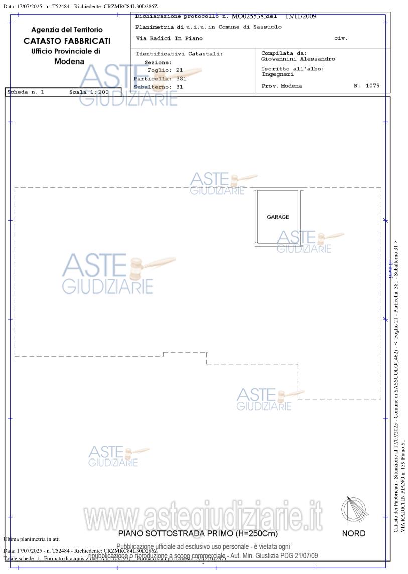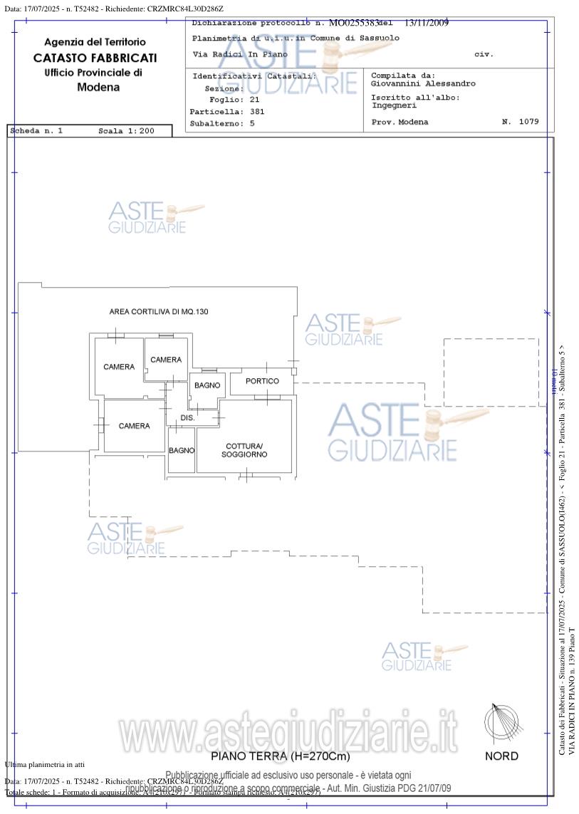 Professionista delegato alla vendita Avv. Linda Chiossi - Email "linda.chiossi@avvocatolindachiossi.it"; Tel. 059/244848.