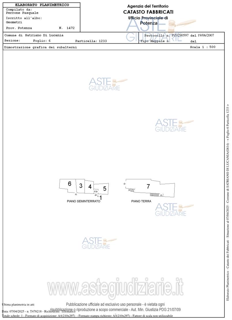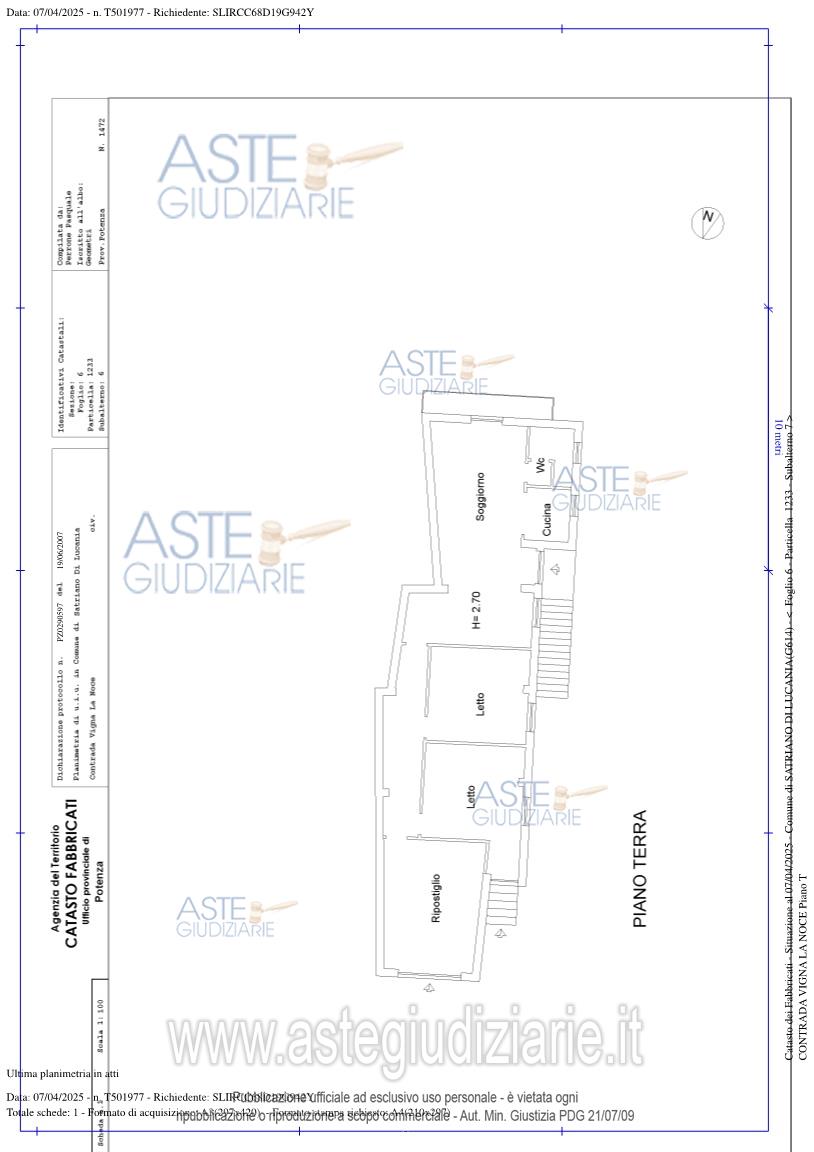 Vendita all'asta Senza incanto, con gara telematica asincrona - LOTTO UNICO: Piena ed intera proprietà (1/1) di abitazione al piano rialzato che si sviluppa su due livelli con due ingressi indipendenti dalla corte pertinenziale avente accesso direttamente dalla strada pubblica. Prezzo base € 27.712,50 (offerta minima € 20.784,37). Data inizio operazioni di vendita: 21/05/2026 ore 15:00. Professionista delegato alla vendita Avv. Carmela Pandolfo - Email "carmelapandolfo@tiscali.it"; Cell. 3482944668; Tel. 0971993450. Custode Giudiziario Avv. Carmela Pandolfo - Email "carmelapandolfo@tiscali.it"; Cell. 3482944668; Tel. 0971993450. Rif. Tribunale di Potenza - Espropriazione immobiliare (cartabia) n. 8/2025