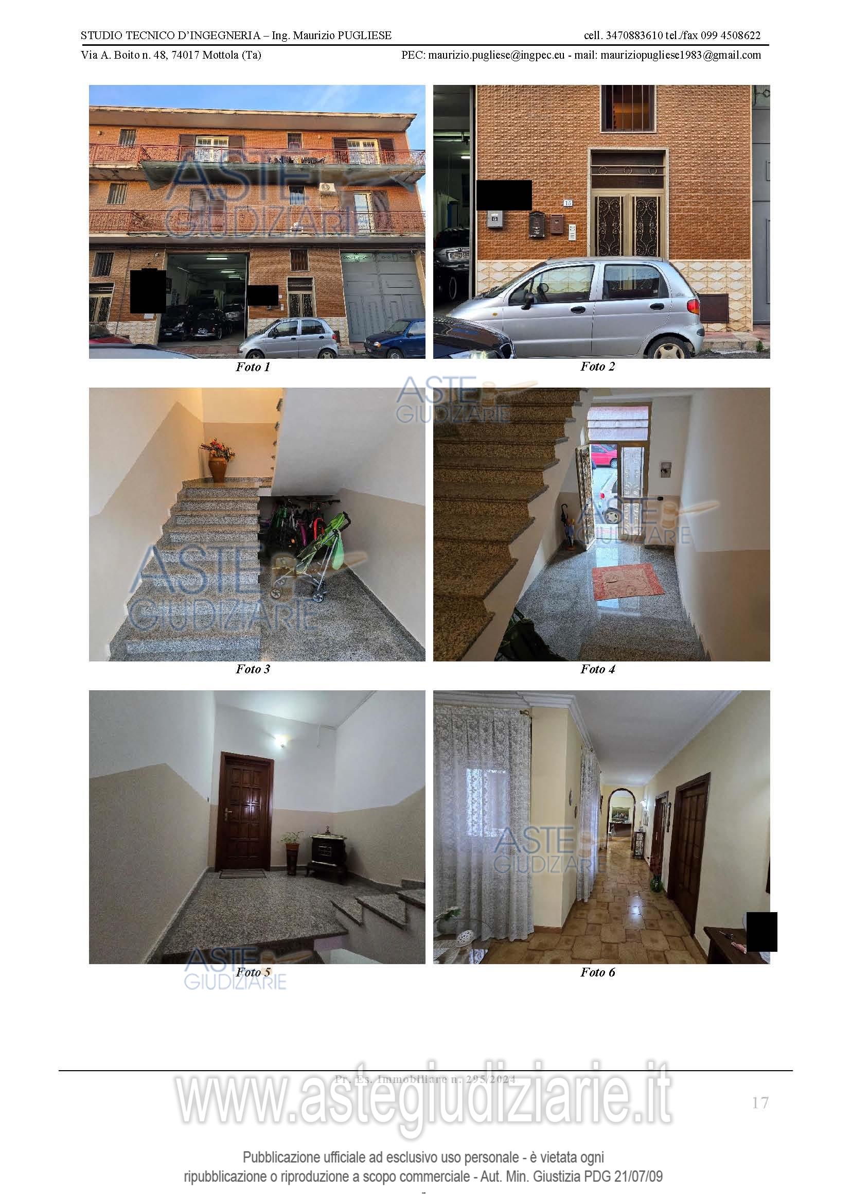Vendita all'asta Senza incanto, con gara telematica asincrona - LOTTO UNICO: Piena proprietà di un appartamento al secondo ed ultimo piano. Prezzo base € 38.250,00 (offerta minima € 28.687,50). Data inizio operazioni di vendita: 11/02/2026 ore 17:30. Giudice Dott. Andrea Paiano. Professionista delegato alla vendita Avv. Stefania Maselli. Custode Giudiziario Ivg Taranto - Email "ivgta.visiteimmobili@gmail.com"; Tel. 0999946442. Rif. Tribunale di Taranto - Espropriazione immobiliare (cartabia) n. 295/2024
