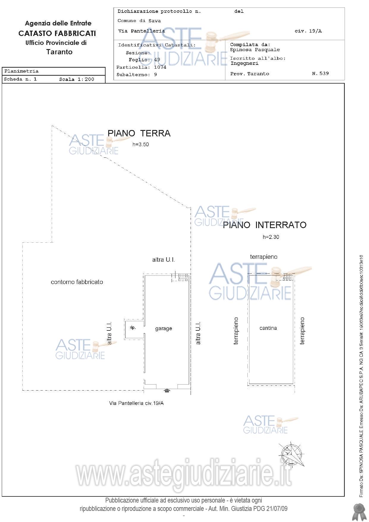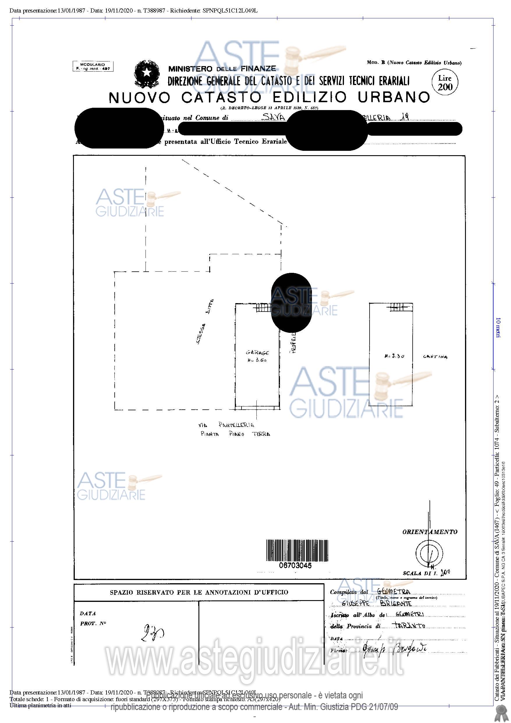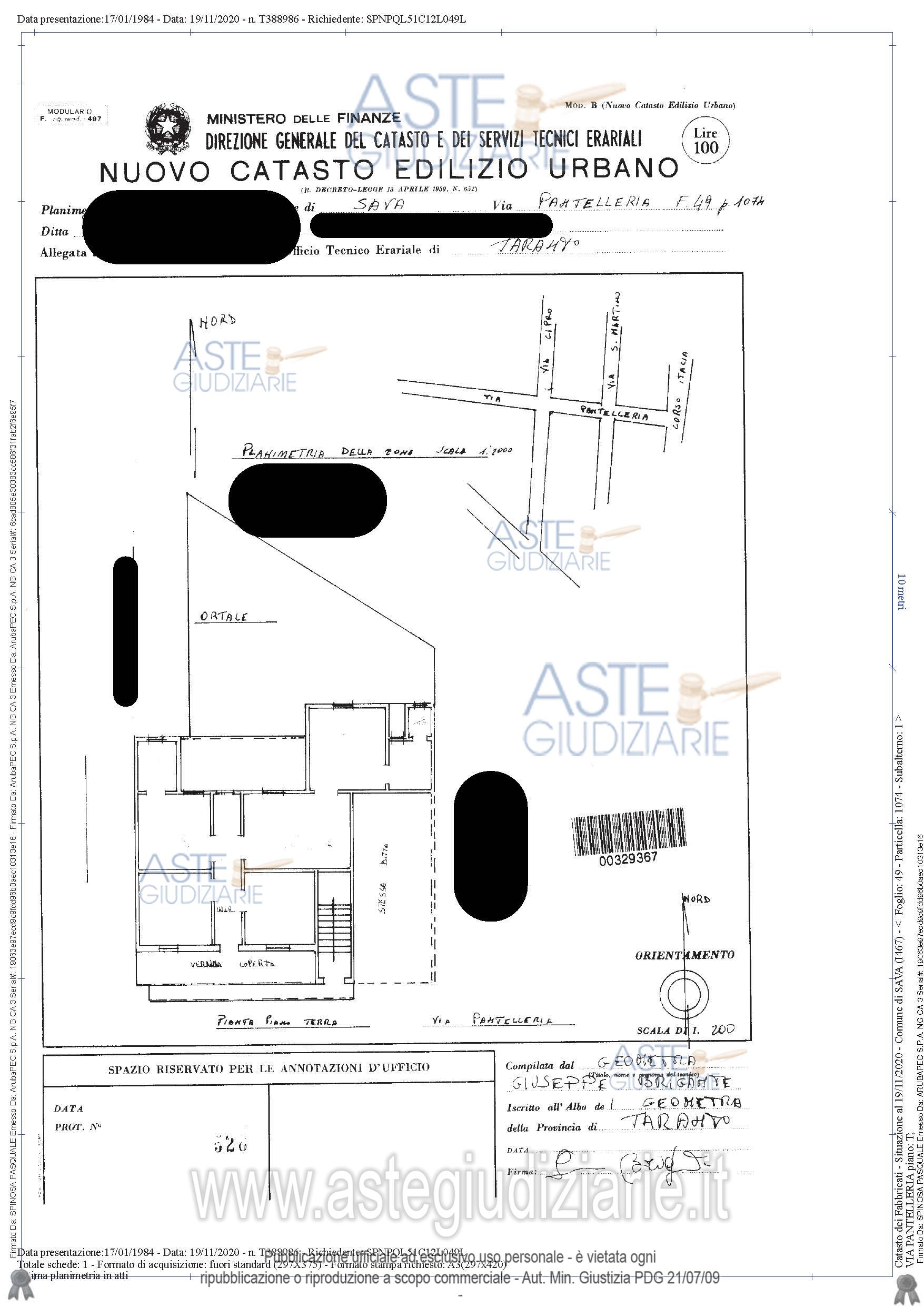 Vendita all'asta Senza incanto, con gara telematica asincrona - LOTTO 1: Piena proprietà dell’intero piano terra dell’edificio in Sava alla via Pantelleria nn.17-19 comprendente due alloggi ed una autorimessa con ripostiglio e scantinato. Prezzo base € 100.650,00 (offerta minima € 75.487,50). Data inizio operazioni di vendita: 20/01/2026 ore 16:00. Professionista delegato alla vendita Avv. Paola Portacci. Custode Giudiziario Ivg - Email "ivgta.visiteimmobili@gmail.com". Rif. Tribunale di Taranto - Espropriazione immobiliare (cartabia) n. 176/2024