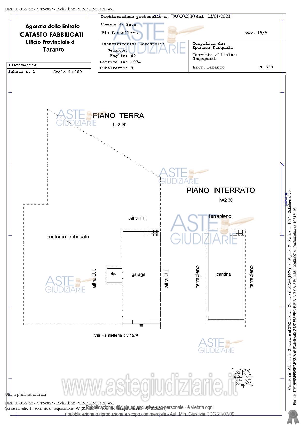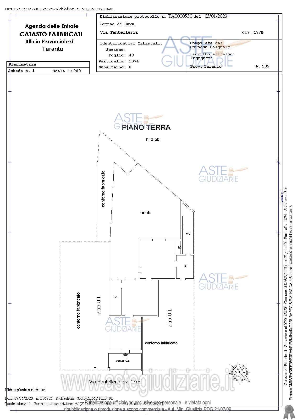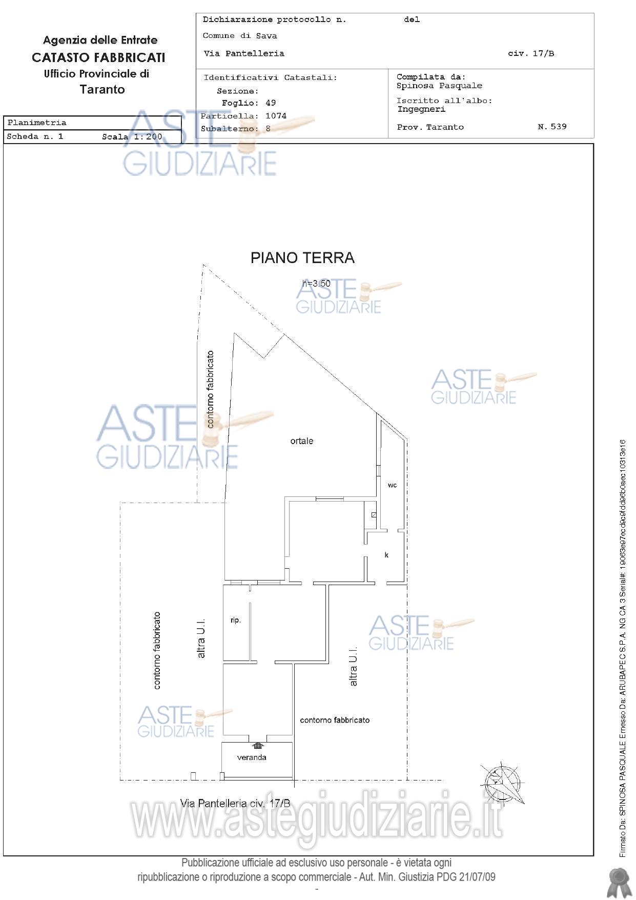 Vendita all'asta Senza incanto, con gara telematica asincrona - LOTTO 1: Piena proprietà dell’intero piano terra dell’edificio in Sava alla via Pantelleria nn.17-19 comprendente due alloggi ed una autorimessa con ripostiglio e scantinato. Prezzo base € 100.650,00 (offerta minima € 75.487,50). Data inizio operazioni di vendita: 20/01/2026 ore 16:00. Professionista delegato alla vendita Avv. Paola Portacci. Custode Giudiziario Ivg - Email "ivgta.visiteimmobili@gmail.com". Rif. Tribunale di Taranto - Espropriazione immobiliare (cartabia) n. 176/2024