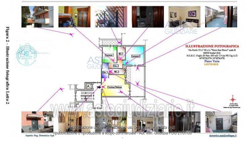 Vendita all'asta Senza incanto, con gara telematica asincrona - LOTTO 2: Piena ed intera proprietà di un Appartamento in condominio, ubicato in Scafati (SA) via Paolo VI, n.20, scala B, Piano Terra (Rialzato); il bene è composto da una cucina/salone, un disimpegno, due camere, due bagni e due balconi. L’altezza interna è di mt 2,75, ha una superficie calpestabile pari a mq 67,30 e superficie balconi di mq 9,30. Prezzo base € 110.542,50 (offerta minima € 82.907,00). Data inizio operazioni di vendita: 05/06/2026 ore 16:00. Professionista delegato alla vendita Avv. Giuseppina Parrilli. Custode Giudiziario Avv. Giuseppina Parrilli - Email "g.parrilli@studiolegaleparrilli.it"; Cell. 3393418155. Rif. Tribunale di Nocera Inferiore - Esecuzione immobiliare post legge 80 n. 87/2009
