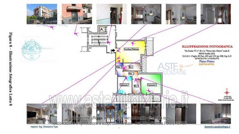 Vendita all'asta Senza incanto, con gara telematica asincrona - LOTTO 8: Piena ed intera proprietà di un Appartamento in condominio, ubicato in Scafati (SA) via Paolo VI, n.20 , scala B, Piano Primo; il bene è composto da una cucina/salone, due disimpegni, due camere da letto, due bagni e tre balconi. L’altezza interna è di mt 2,75, ha una superficie calpestabile pari a mq 70,70 e superficie balconi di mq 19,00. Prezzo base € 111.987,50 (offerta minima € 83.990,00). Data inizio operazioni di vendita: 05/06/2026 ore 16:00. Professionista delegato alla vendita Avv. Giuseppina Parrilli. Custode Giudiziario Avv. Giuseppina Parrilli - Email "g.parrilli@studiolegaleparrilli.it"; Cell. 3393418155. Rif. Tribunale di Nocera Inferiore - Esecuzione immobiliare post legge 80 n. 87/2009