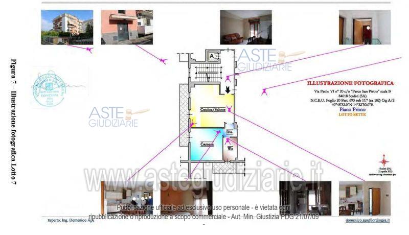 Vendita all'asta Senza incanto, con gara telematica asincrona - LOTTO 7: Piena ed intera proprietà di un Appartamento in condominio, ubicato in Scafati (SA) via Paolo VI, n.20 , scala B, Piano Primo; il bene è composto da una cucina/salone, un disimpegno, una camera da letto matrimoniale, un bagno e due balconi. L’altezza interna è di mt 2,75, ha una superficie calpestabile pari a mq 51,50 e superficie balconi di mq 12,50. Prezzo base € 76.585,00 (offerta minima € 57.439,00). Data inizio operazioni di vendita: 05/06/2026 ore 16:00. Professionista delegato alla vendita Avv. Giuseppina Parrilli. Custode Giudiziario Avv. Giuseppina Parrilli - Email "g.parrilli@studiolegaleparrilli.it"; Cell. 3393418155. Rif. Tribunale di Nocera Inferiore - Esecuzione immobiliare post legge 80 n. 87/2009