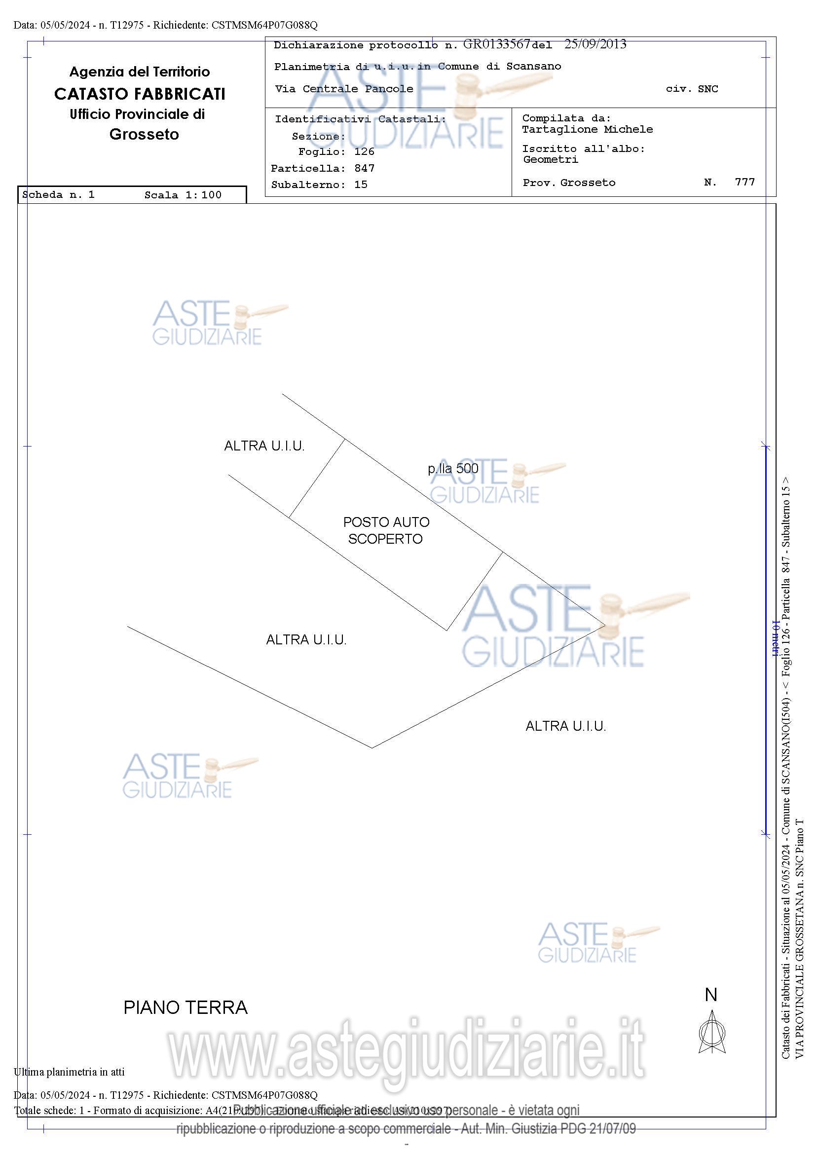 Vendita all'asta Senza incanto, con gara telematica asincrona - LOTTO 5: Appartamento di abitazione sito al piano primo con ingresso a sinistra attraverso la terrazza esclusiva composto di: un vano con angolo di cottura, disimpegno, due vani e bagno. Ccensito nel Catasto Fabbricati Comune di Scansano nel foglio 126, p.lla 847, sub. 35, Cat. A/2, Classe 2, 4 vani, sup cat61 mq, rendita €. 371,85. Posto auto scoperto.Censito Catasto Fabbricati Comune Di Scansano nel foglio 126, p.lla 847, sub. 15, Cat. C/6, Classe 2, 13 mq., superficie catastale 12 mq, rendita €. 16,78. Prezzo base € 44.880,00 (offerta minima € 33.660,00). Data inizio operazioni di vendita: 14/04/2026 ore 11:00. Professionista delegato alla vendita Dott. Irene Inganni - Email "ireneinganni@gmail.com"; Cell. 3296196791; Tel. 05642736. Custode Giudiziario Lucia Ghelli - Email "ivggrosseto@astagiudiziaria.com"; Cell. 3426598791; Tel. 050554790. Rif. Tribunale di Grosseto - Espropriazione immobiliare (cartabia) n. 154/2023