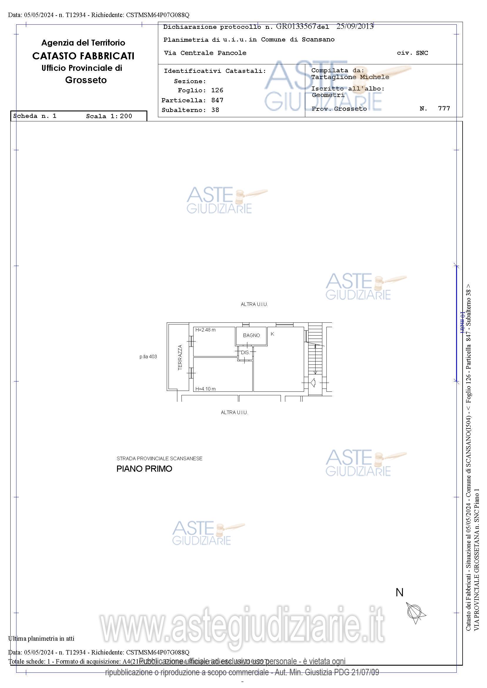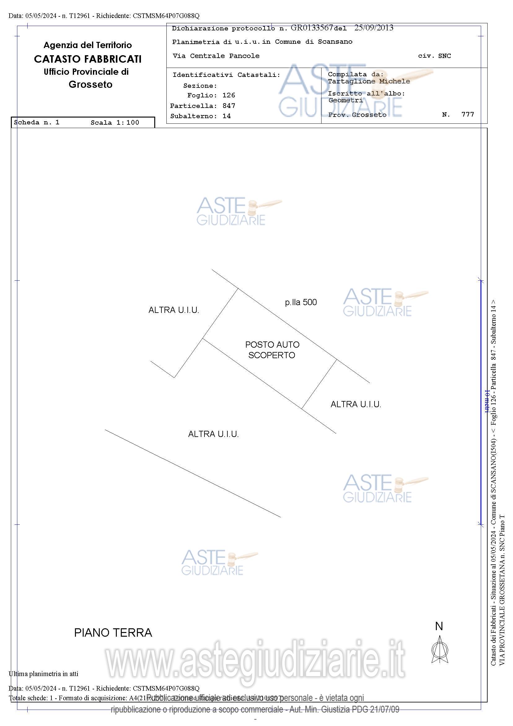 Vendita all'asta Senza incanto, con gara telematica asincrona - LOTTO 6: Appartamento di abitazione sito al piano primo con ingresso dalla porta a destra composto di: un vano con angolo di cottura, disimpegno, due vani, terrazza e bagno. censito nel Catasto Fabbricati Comune di Scansano foglio 126, p.lla 847, sub. 38, Cat. A/2, Classe 2, 4 vani, superficie catastale 67 mq, rendita €. 371,85. Posto auto scoperto. censito Catasto Fabbricati Comune di Scansano foglio 126, p.lla 847, sub. 14, Cat. C/6, Classe 2, consistenza 13 mq., superficie catastale 12 mq, rendita €. 16,78. Prezzo base € 54.550,00 (offerta minima € 40.900,00). Data inizio operazioni di vendita: 14/04/2026 ore 11:30. Professionista delegato alla vendita Dott. Irene Inganni - Email "ireneinganni@gmail.com"; Cell. 3296196791; Tel. 05642736. Custode Giudiziario Lucia Ghelli - Email "ivggrosseto@astagiudiziaria.com"; Cell. 3426598791; Tel. 050554790. Rif. Tribunale di Grosseto - Espropriazione immobiliare (cartabia) n. 154/2023
