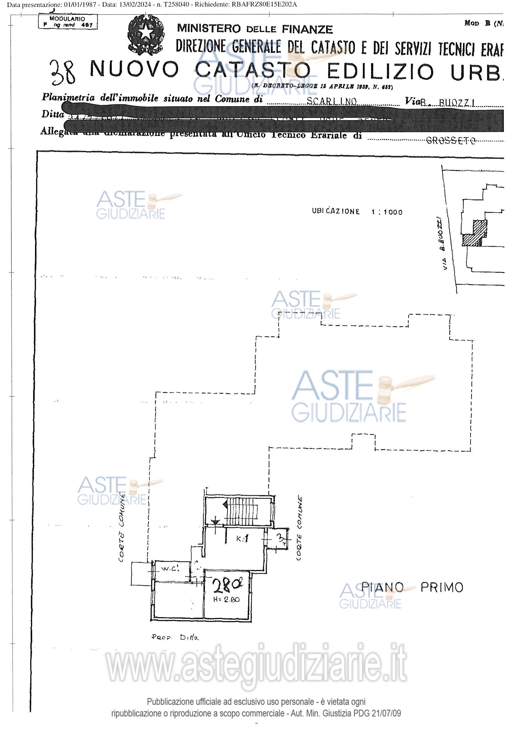 Vendita all'asta Senza incanto, con gara telematica asincrona - LOTTO UNICO: Quota pari a 1/1 del diritto di Nuda Proprietà, su un appartamento di 3,5vani con garage, posti rispettivamente al piano primo e terra di un edificiocondominiale, siti in SCARLINO (GR),frazione Scarlino Scalo, Via Buozzi, coningressi ai civici 30 e 34. L’appartamento risulta composto da un localeunico d’ingresso, destinato a cucina e pranzo, che si affaccia su unterrazzino, chiuso con una veranda condonata, prospicente sulla corteretrostante del fabbricato. Prezzo base € 49.572,00 (offerta minima € 37.179,00). Data inizio operazioni di vendita: 29/04/2026 ore 10:30. Giudice Dott. Cristina Nicolo'. Professionista delegato alla vendita Dott. Franco Montanelli - Email "f.montanelli@satorservizi.it"; Tel. 05641768360. Custode Giudiziario Lucia Ghelli - Email "ivggrosseto@astagiudiziaria.com"; Tel. 3426598791. Rif. Tribunale di Grosseto - Esecuzione immobiliare post legge 80 n. 35/2023