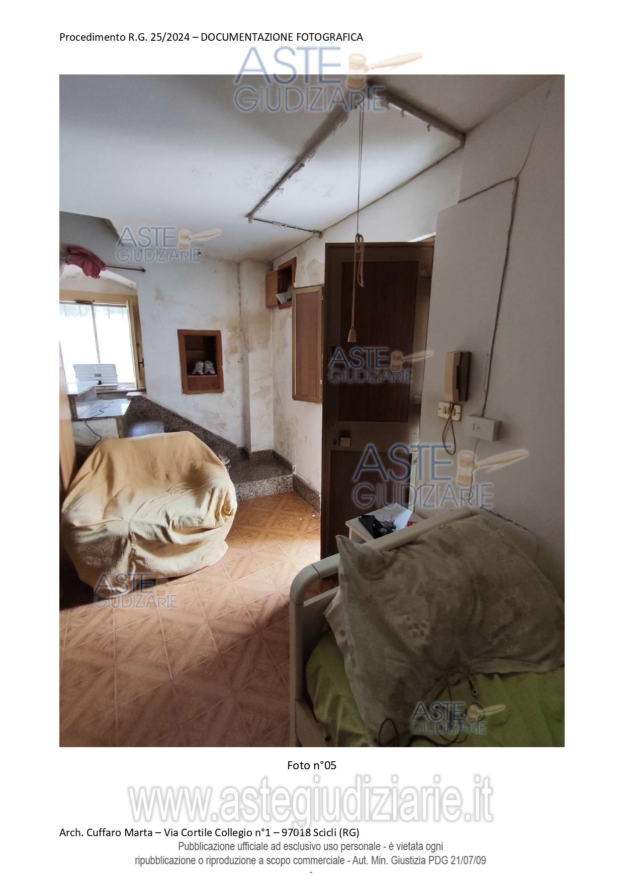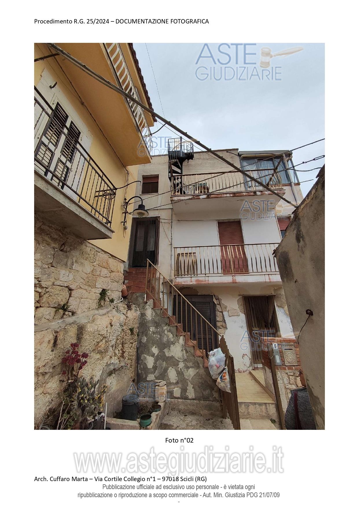 Vendita all'asta Senza incanto, con gara telematica sincrona mista - LOTTO UNICO: Fabbricato per civile abitazione, su tre livelli. Al piano terra si trova un vano ed un locale sgombero. Nel sottoscala vi è un bagnetto con doccia e lavabo. Da scala interna, si accede al piano primo in cui vi è un vano letto matr. ed un bagno completo di tutti i Al piano primo, si sviluppa anche un locale, ad oggi separato ed accessibile solo da una scala esterna del piazzale di pertinenza a piano terra attraverso una porta di ingresso separata. Al piano secondo si sviluppa la cucina e la sala pranzo. Prezzo base € 29.046,10 (offerta minima € 21.784,57). Data vendita 25/03/2026 ore 10:30. Giudice Antonio Pianoforte. Professionista delegato alla vendita Avv. Monica Occhipinti - Email "monica.occhipinti@libero.it"; Cell. 3383386833; Tel. 0932246011. Custode Giudiziario Avv. Monica Occhipinti - Email "monica.occhipinti@libero.it"; Cell. 3383386833; Tel. 0932246011. Rif. Tribunale di Ragusa - Espropriazione immobiliare (cartabia) n. 25/2024