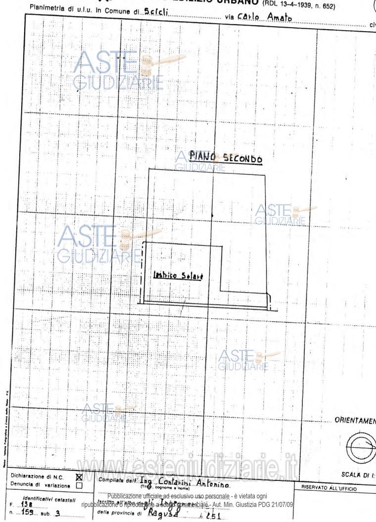 Vendita all'asta Senza incanto, con gara telematica sincrona mista - LOTTO UNICO: Diritti di piena proprietà su fabbricato a destinazione abitativa sito in Scicli nella Via Carlo Amato n. 9-11. L'immobile, con struttura in muratura, è disposto su tre livelli fuori terra ed è situato nel centro storico di Scicli a circa 200 metri dalla famosa Piazza Busacca. Prezzo base € 29.250,00 (offerta minima € 21.938,00). Data vendita 28/05/2026 ore 11:30. Giudice Dott. Francesco Rio. Professionista delegato alla vendita Dott. Concetta Occhipinti - Email "c.occhipinti@ocdlstudio.it"; Cell. 3396000674; Tel. 0932683263. Custode Giudiziario Dott. Concetta Occhipinti - Email "c.occhipinti@ocdlstudio.it"; Cell. 3396000674; Tel. 0932683263. Rif. Tribunale di Ragusa - Espropriazione immobiliare (cartabia) n. 124/2023