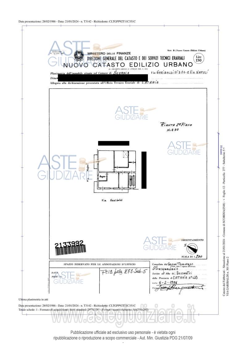 Vendita all'asta Senza incanto, con gara telematica sincrona mista - LOTTO UNICO: casa per civile abitazione categoria A/2 posto al piano 2 di un fabbricato condominiale ubicato a Scordia via Garibaldi 301, metri quadri 122 n° vani 6. Prezzo base € 16.389,80 (offerta minima € 12.292,30). Data vendita 27/03/2026 ore 12:00. Professionista delegato alla vendita Avv. Fabio Bonsignore - Email "fabiobonsignore50@gmail.com"; Cell. 3280126257; Tel. 0933362882. Custode Giudiziario Avv. Fabio Bonsignore - Email "fabiobonsignore50@gmail.com"; Cell. 3280126257; Tel. 0933362882. Rif. Tribunale di Caltagirone - Esecuzione immobiliare post legge 80 n. 31/2021