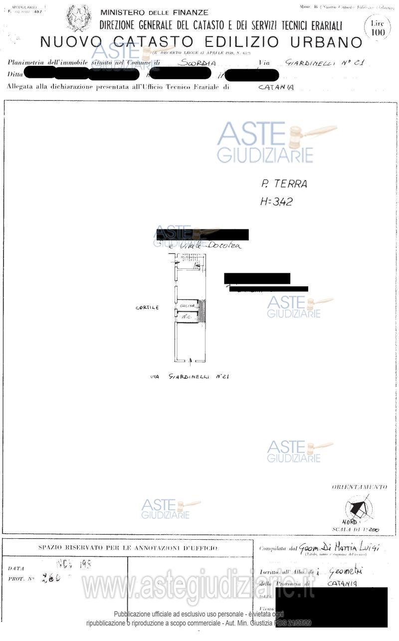 Vendita all'asta Senza incanto - LOTTO 1: Appartamento sito a Scordia (CT), Via Giardinelli n. 21, piano terra, censito al N.C.E.U. del Comune di Scordia al foglio 21, particella 1713, sub 4, cat. A/4, classe 2, consistenza 3,5 vani, R.C. € 70,50, classe energetica F. Prezzo base € 11.587,50 (offerta minima € 8.690,63). Data vendita 29/10/2025 ore 17:30. Professionista delegato alla vendita Avv. Alessandra Castiglione - Email "ale-castiglione@libero.it"; Tel. 09331963803. Custode Giudiziario Avv. Alessandra Castiglione - Email "ale-castiglione@libero.it"; Tel. 09331963803. Rif. Tribunale di Caltagirone - Esecuzione immobiliare post legge 80 n. 35/2016