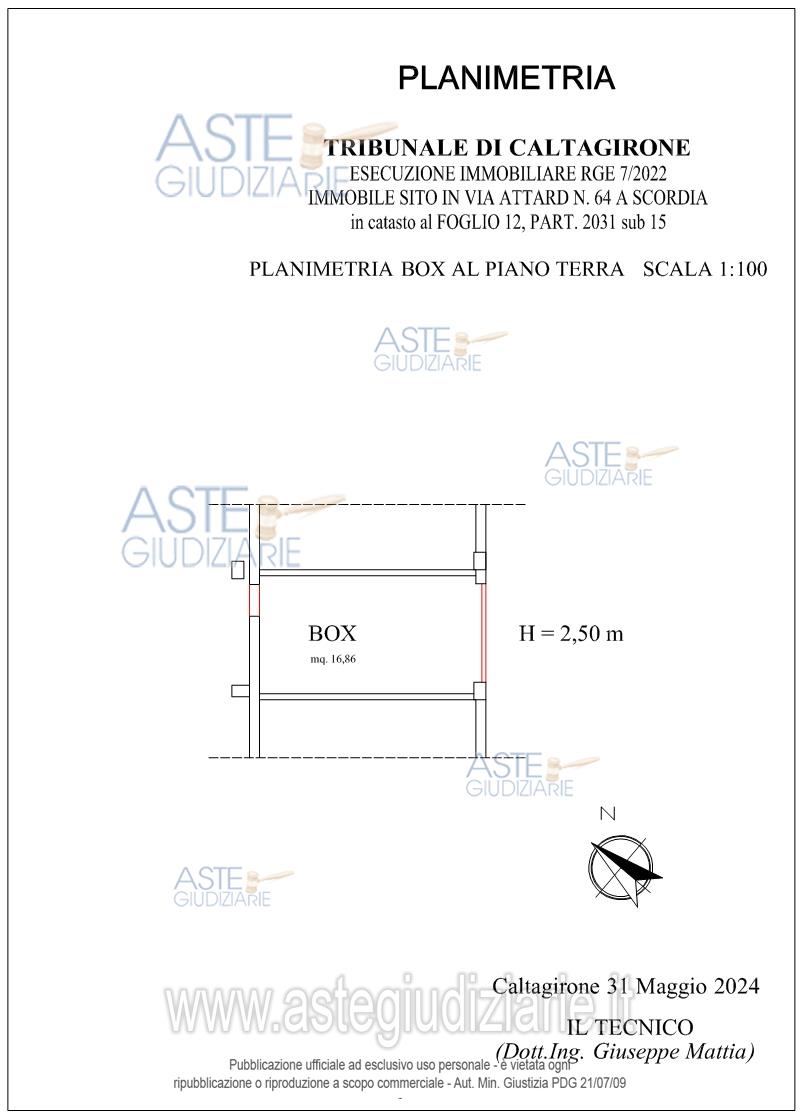 Vendita all'asta Senza incanto, con gara telematica sincrona mista - LOTTO UNICO: Appartamento per civile abitazione (Categoria A/2), sito in Scordia in via Attard n. 64 al 2° piano - Box/garage (categ. C6 – stalle, scuderie, rimesse, autorimesse) sito in Scordia (CT) in via Attard n. 64 al piano terra. Prezzo base € 69.000,00 (offerta minima € 51.750,00). Data vendita 27/02/2026 ore 12:00. Professionista delegato alla vendita Avv. Fabio Bonsignore - Email "fabiobonsignore50@gmail.com"; Cell. 3280126257; Tel. 0933338235. Custode Giudiziario Avv. Fabio Bonsignore - Email "fabiobonsignore50@gmail.com"; Cell. 3280126257; Tel. 0933338235. Rif. Tribunale di Caltagirone - Esecuzione immobiliare post legge 80 n. 7/2022