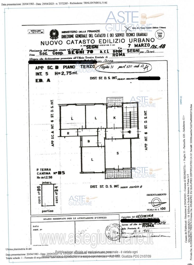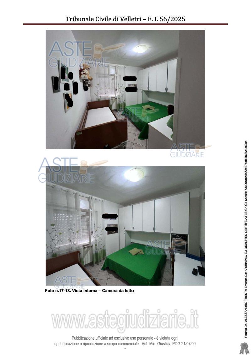 Vendita all'asta Senza incanto, con gara telematica asincrona - LOTTO UNICO: Diritto di proprietà superficiaria di appartamento sito in Via Sette Marzo n. 18, piano terzo interno 5, edificio "A", scala B, con annessa cantina al piano terra, distinta con interno 5/B e posto auto pertinenziale scoperto. Prezzo base € 95.000,00 (offerta minima € 71.250,00). Data inizio operazioni di vendita: 17/04/2026 ore 15:00. Giudice Dott.Ssa Anna Luisa Di Serafino. Professionista delegato alla vendita Avv. Avv. Paolo Pistoia - Email "paolo.pistoia@alice.it". Custode Giudiziario Avv. Avv. Paolo Pistoia - Email "paolo.pistoia@alice.it". Rif. Tribunale di Velletri - Espropriazione immobiliare (cartabia) n. 56/2025