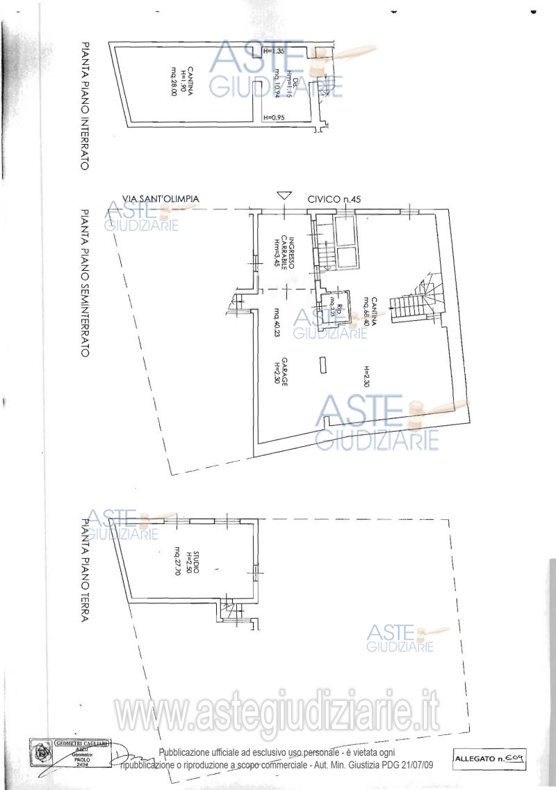 Vendita all'asta Senza incanto, con gara telematica asincrona - LOTTO UNICO:  Piena proprietà dell’unità immobiliare avente accesso dal vicolo I Sant'Olimpia, composta da 10 vani, sita piano S1/T/1. Prezzo base € 249.600,00 (offerta minima € 187.200,00). Data inizio operazioni di vendita: 26/11/2025 ore 11:00. Giudice Dott. Francesco De Giorgi. Professionista delegato alla vendita Not. Michele Puxeddu - Email "mpuxeddu@notariato.it"; Tel. 070663241.  Rif. Tribunale di Cagliari - Contenzioso civile n. 4592/2008