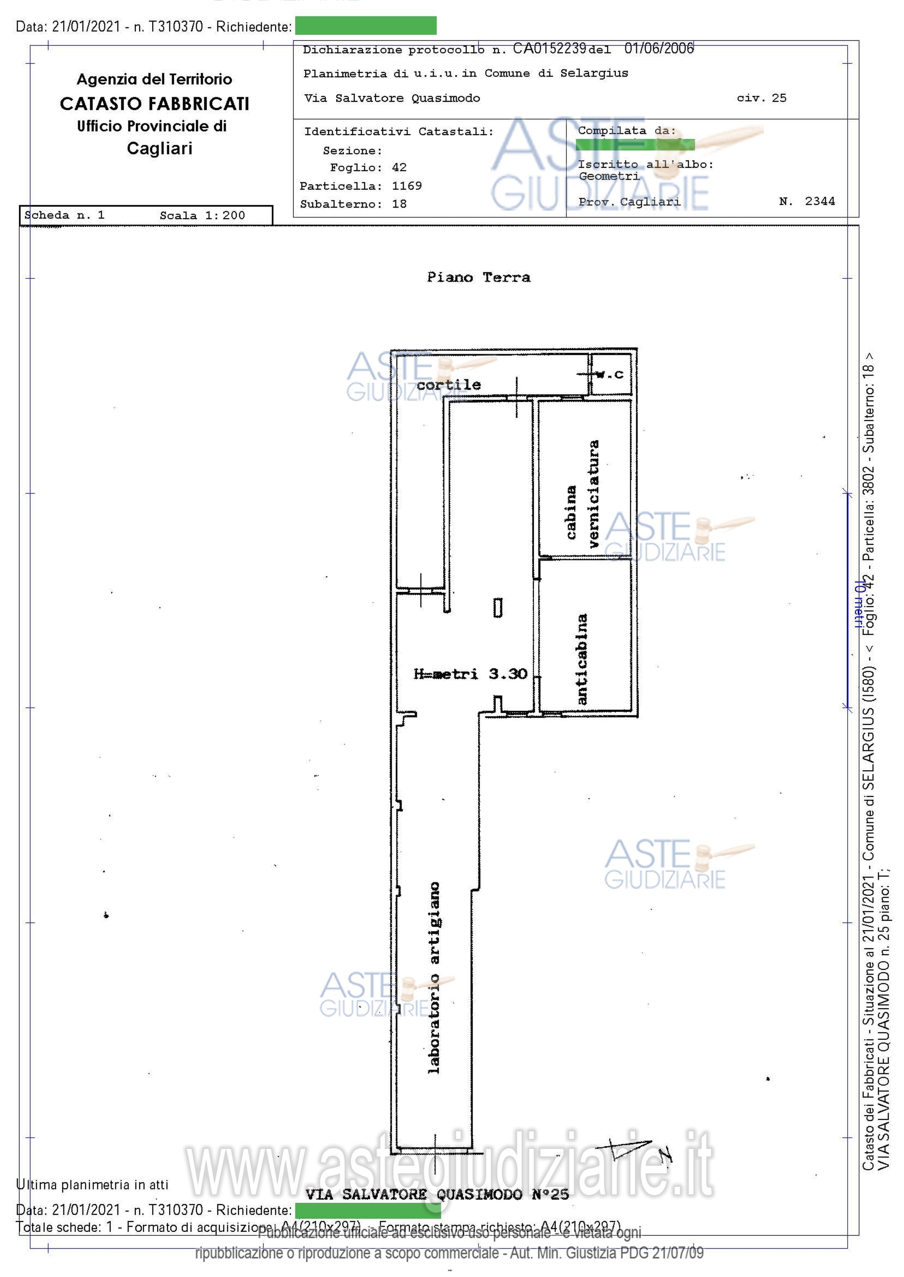 Vendita all'asta Senza incanto, con gara telematica asincrona - LOTTO UNICO: Selargius (CA), via Salvatore Quasimodo, 31 (già 25), lotto unico, diritto proprietà su laboratorio artigianale e piccolo appartamento ad uso residenziale collegati tra loro. Prezzo base € 84.000,00 (offerta minima € 63.000,00). Data inizio operazioni di vendita: 14/04/2026 ore 16:30. Giudice Silvia Cocco. Professionista delegato alla vendita Avv. Maria Luisa Lovicu - Email "marialuisalovicu@gmail.com"; Tel. 0703328442. Custode Giudiziario Istituto Vendite Giudiziarie Cagliari - Email "ivg.visiteimmobili@tiscali.it"; Tel. 0702299036. Rif. Tribunale di Cagliari - Esecuzione immobiliare post legge 80 n. 394/2017