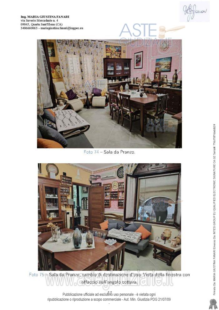 Vendita all'asta Senza incanto, con gara telematica asincrona - LOTTO UNICO: Quota pari a 1/1 del diritto di usufrutto sull’immobile composto da unità immobiliare di mq 430 con civile abitazione di mq 259 e quota pari a 1 / 2 del diritto di usufrutto sull’immobile costituito da un terreno seminativo. Prezzo base € 23.840,00 (offerta minima € 17.880,00). Data inizio operazioni di vendita: 26/02/2026 ore 15:00. Giudice Silvia Cocco. Professionista delegato alla vendita Avv. Carlo Sotgiu - Email "avv.carlosotgiu@gmail.com"; Cell. 3480900740; Tel. 070499187. Custode Giudiziario Ivg Cagliari - Email "ivg.visiteimmobili@tiscali.it"; Tel. 0702299036. Rif. Tribunale di Cagliari - Espropriazione immobiliare (cartabia) n. 4/2024