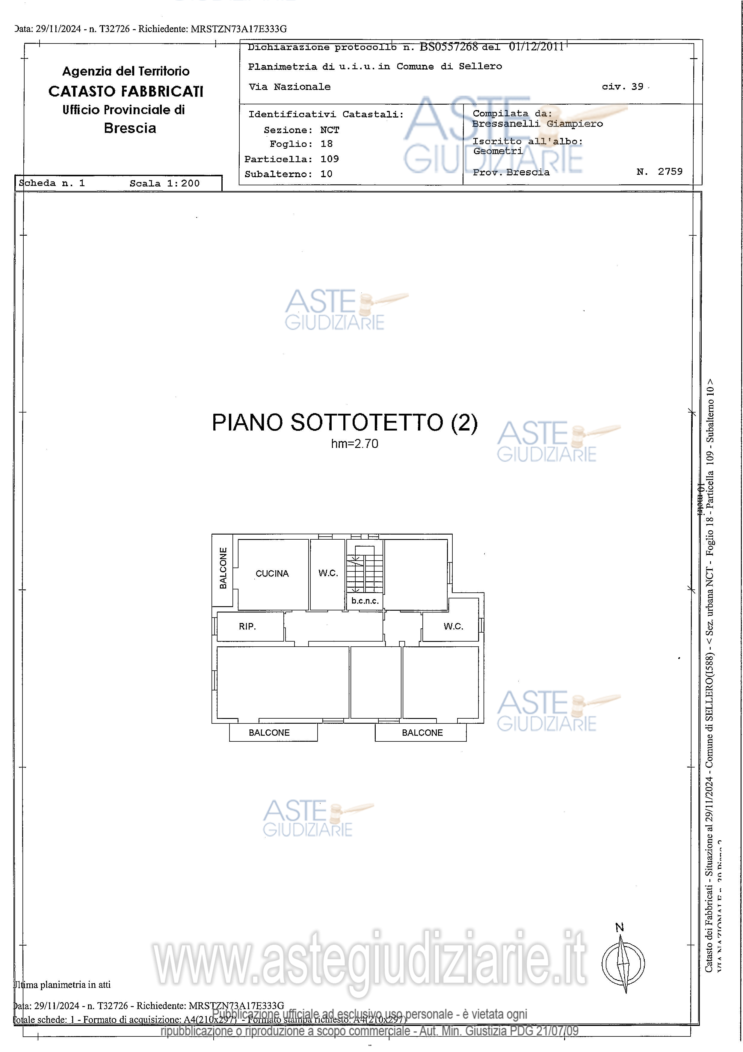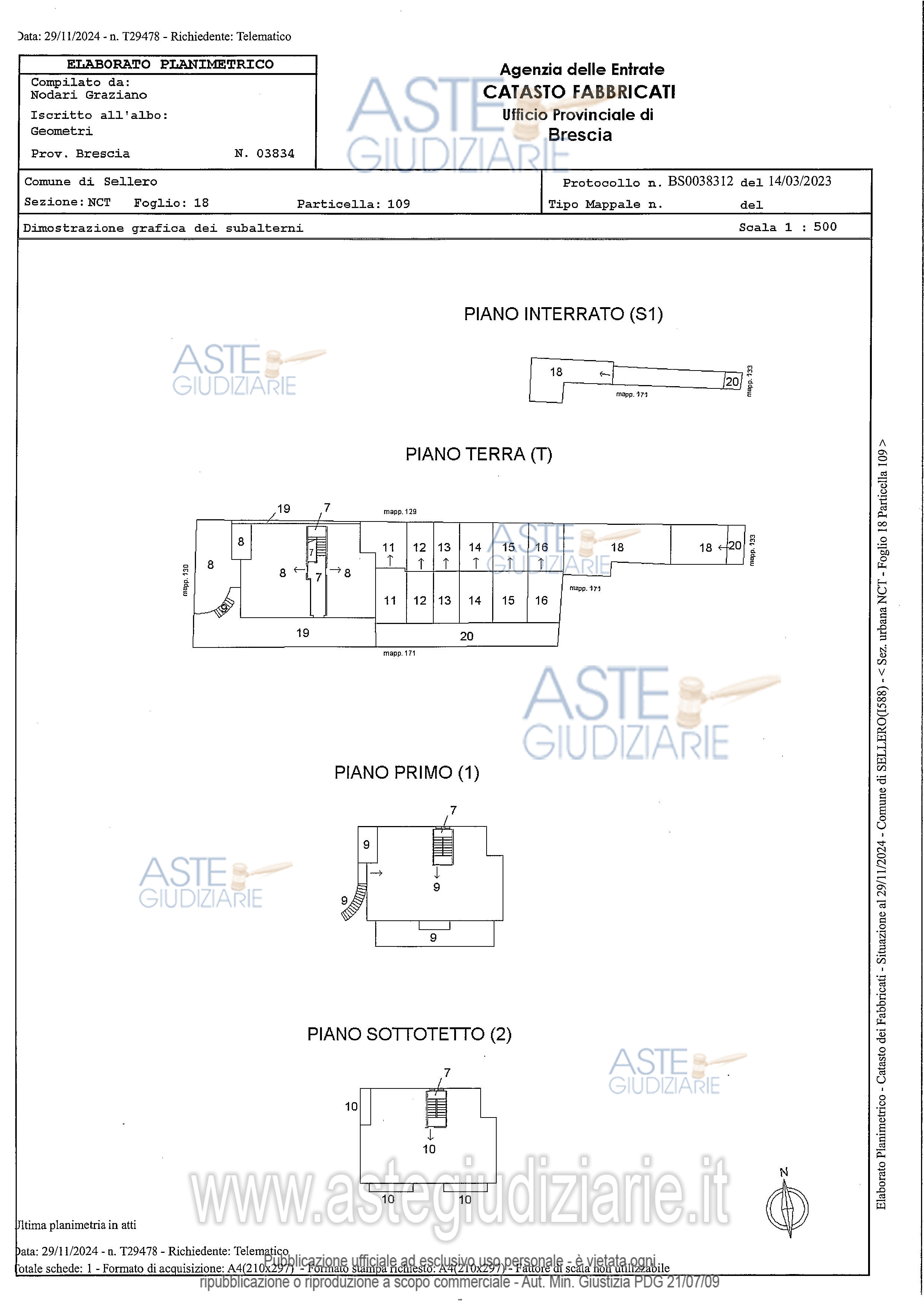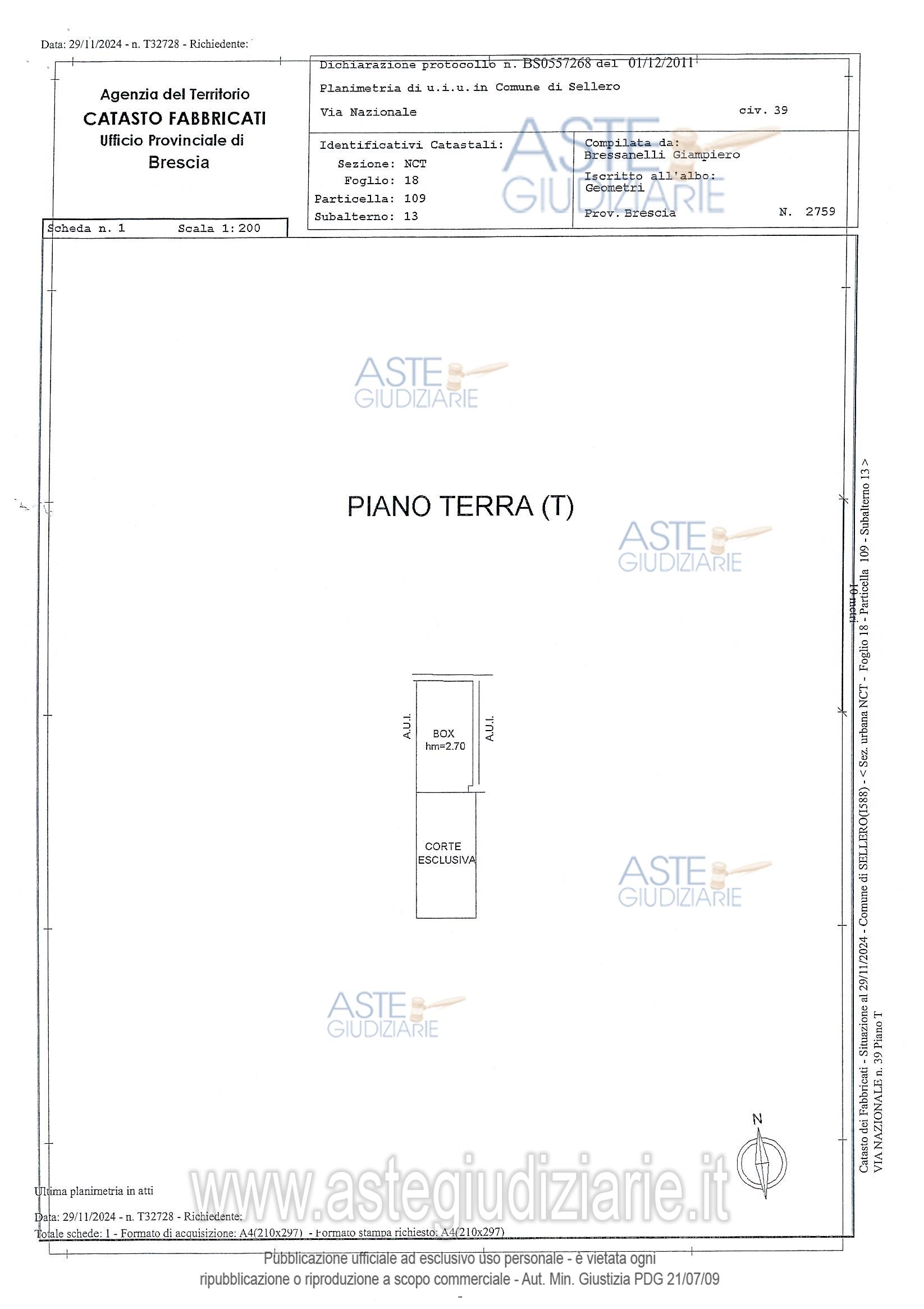 Vendita all'asta Senza incanto, con gara telematica asincrona - LOTTO UNICO: Appartamento posto al piano sottotetto ed autorimessa, il tutto censito al Catasto Fabbricati - Sez. NCT - Fg. 18mapp. 109 sub 10 P. 2, cat. A2 - cl. 5 - vani 6,5 - R.C.Euro 288,70 mapp. 109 sub 13 P. T, cat. C6 - cl. 10 - mq. 15 - R.C.Euro 27,89 con le proporzionali quote delle parti comuni ai sensi di legge. Prezzo base € 61.462,50 (offerta minima € 46.096,88). Data inizio operazioni di vendita: 02/04/2026 ore 12:00. Giudice Dellesecuzione Giudice. Professionista delegato alla vendita Dott. Daniela Pea. Custode Giudiziario Dott. Daniela Pea - Email "procedure@smartufficio.it". Rif. Tribunale di Brescia - Espropriazione immobiliare (cartabia) n. 418/2024