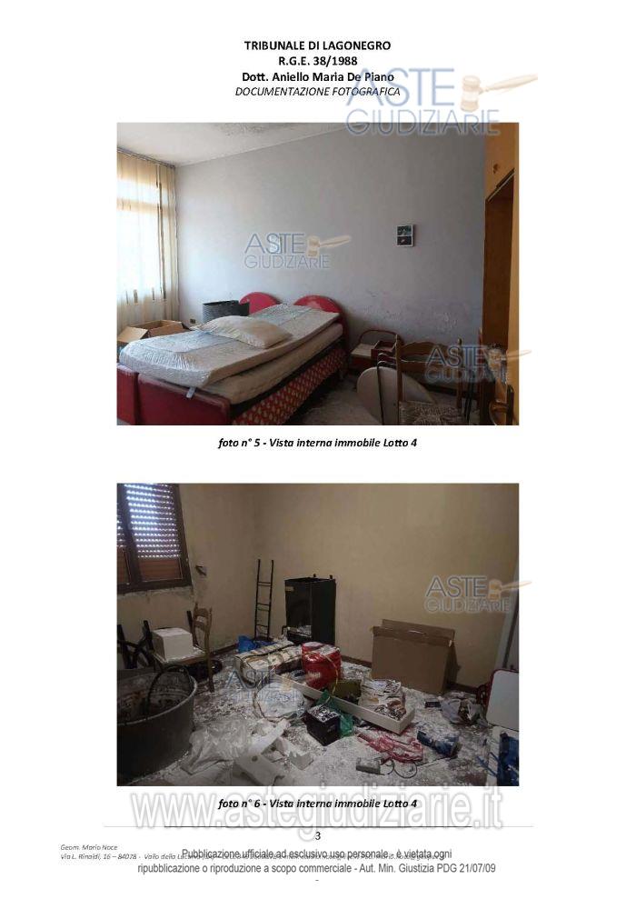 Vendita all'asta Senza incanto, con gara telematica asincrona - LOTTO 4: piena proprietà di immobile in Senise (PZ) composto da Bene 8 - Appartamento - Foglio n. 44, P.lla n. 87, sub 5, cat. A/2, classe 3, consistenza vani 4,5, superficie catastale mq 101, rendita € 214,98– Corso Garibaldi n. 15 - Piano Terzo e Bene 9 - Appartamento - Foglio n. 44, P.lla n. 1763, sub 4, cat. A/3, classe 3, consistenza vani 4,5, superficie catastale mq 89, rendita € 232,41 – Corso Garibaldi - Piano Terzo. Prezzo base € 53.175,00 (offerta minima € 39.881,25). Data inizio operazioni di vendita: 12/11/2025 ore 18:00. Giudice Aniello Maria De Piano. Professionista delegato alla vendita Avv. Italo-Giacomo-Rito Grillo - Email "avvitalogrillo@gmail.com"; Cell. 3386395723. Custode Giudiziario Avv. Italo-Giacomo-Rito Grillo - Email "avvitalogrillo@gmail.com"; Cell. 3386395723. Rif. Tribunale di Lagonegro - Esecuzione immobiliare post legge 80 n. 38/1988
