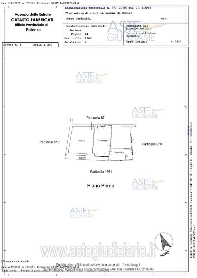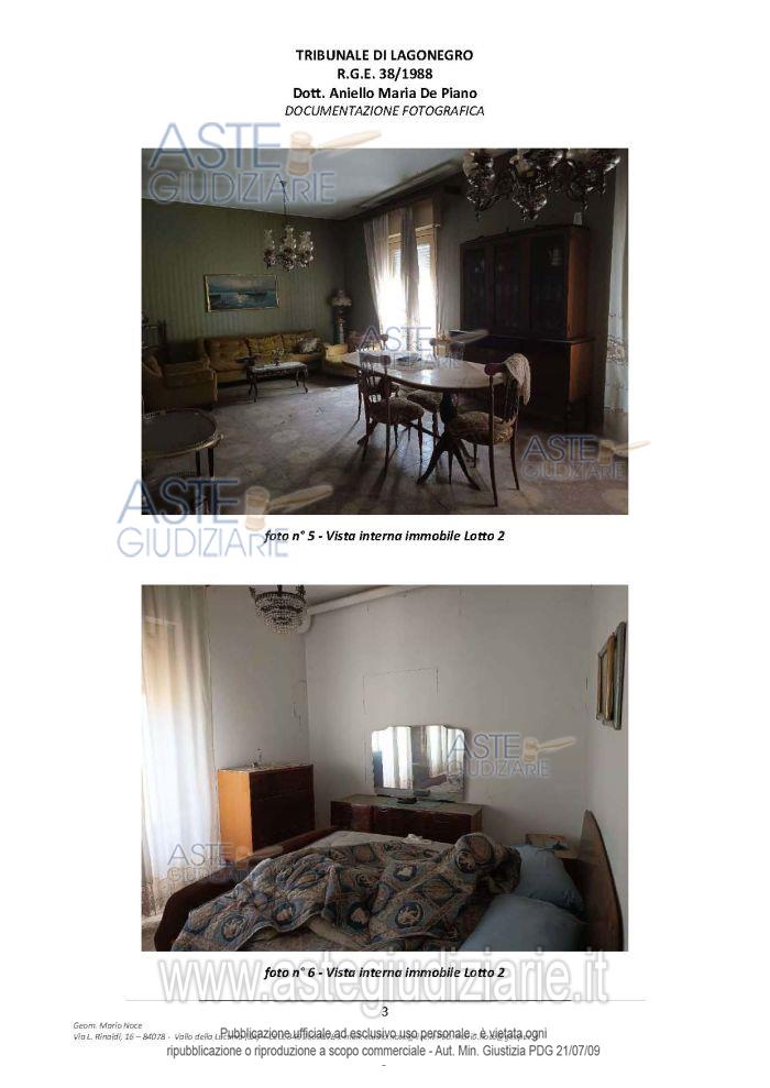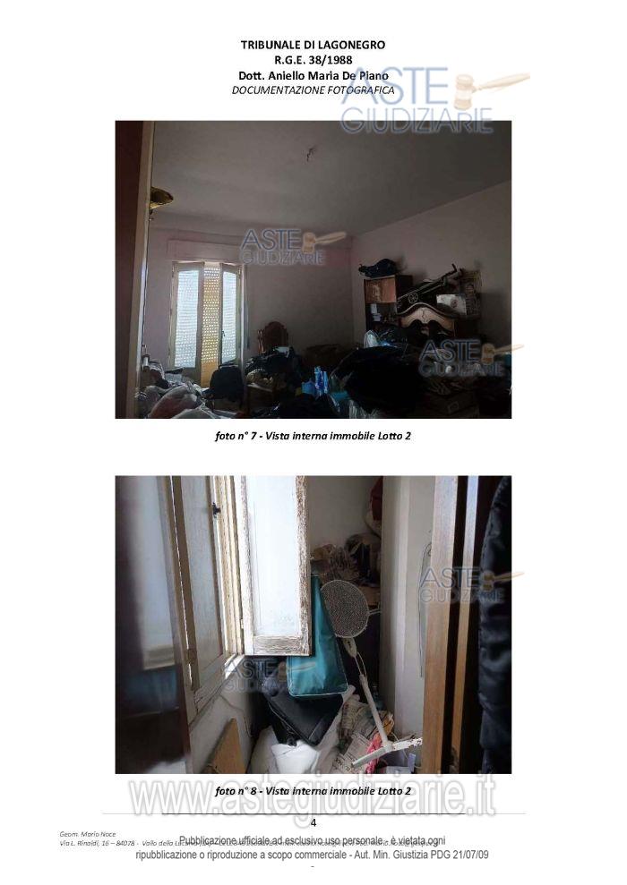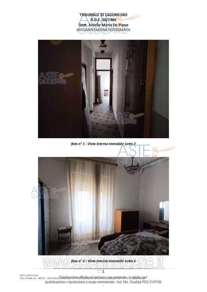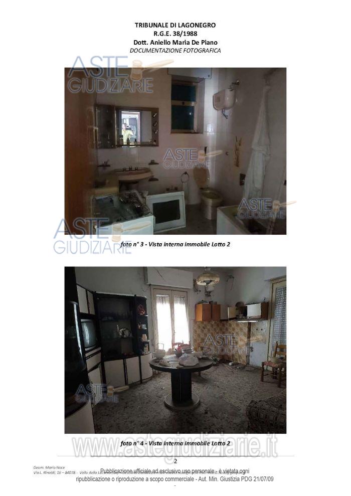 Vendita all'asta Senza incanto, con gara telematica asincrona - LOTTO 2: piena proprietà di immobile in Senise (PZ) composto da Bene 4 - Appartamento - Foglio n. 44, P.lla n. 87, sub 3, cat. A/2, classe 2, consistenza vani 5,5, superficie catastale mq 106, rendita € 220,14 – Corso Garibaldi n. 15 - Piano Primo e Bene 5 - Appartamento - Foglio n. 44, P.lla n. 1763, sub 2, cat. A/3, classe 3, consistenza vani 4, superficie catastale mq 92, rendita € 206,58 – Corso Garibaldi - Piano Primo. Prezzo base € 39.375,00 (offerta minima € 29.531,25). Data inizio operazioni di vendita: 26/05/2026 ore 18:00. Giudice Aniello Maria De Piano. Professionista delegato alla vendita Avv. Italo-Giacomo-Rito Grillo - Email "avvitalogrillo@gmail.com"; Cell. 3386395723. Custode Giudiziario Avv. Italo-Giacomo-Rito Grillo - Email "avvitalogrillo@gmail.com"; Cell. 3386395723. Rif. Tribunale di Lagonegro - Esecuzione immobiliare post legge 80 n. 38/1988