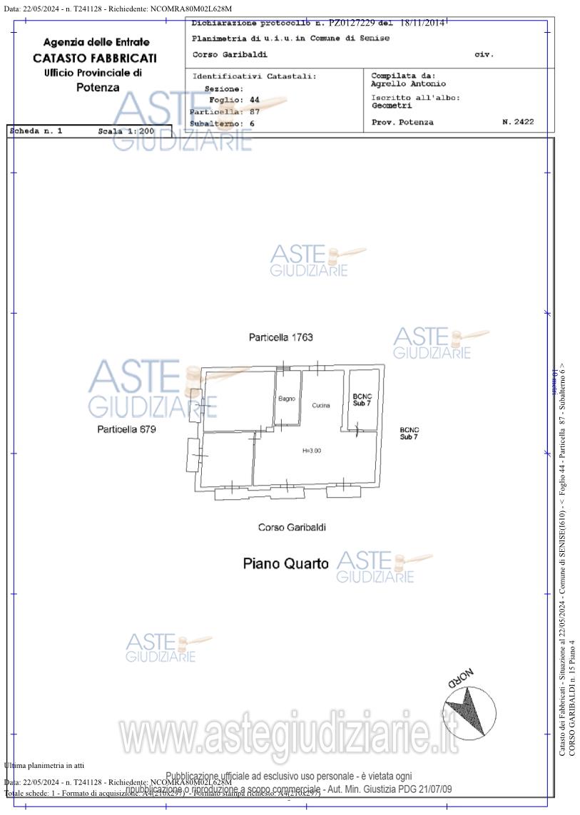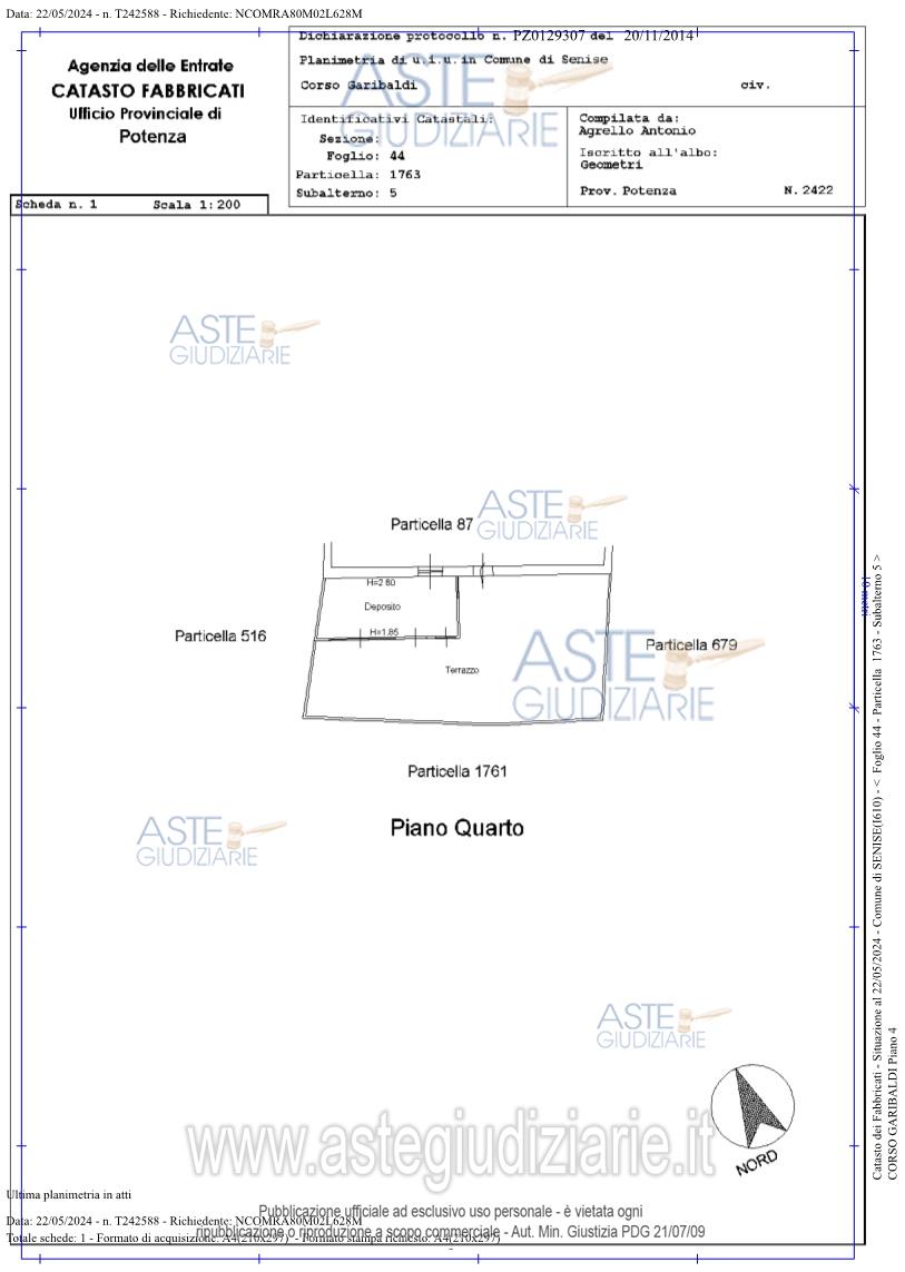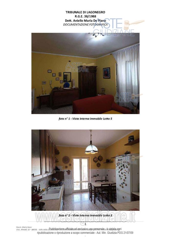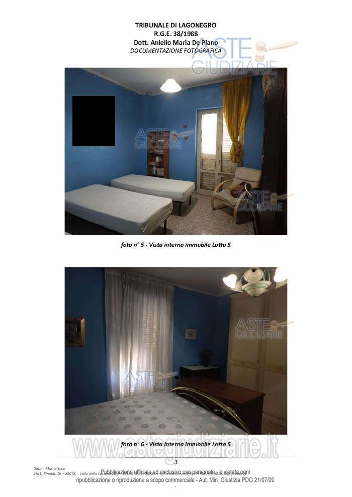 Vendita all'asta Senza incanto, con gara telematica asincrona - LOTTO 5: piena proprietà di immobile in Senise (PZ) composto da Bene 10 – Appartamento - Foglio n. 44, P.lla n. 87, sub 6, cat. A/2, classe 3, consistenza vani 5, superficie catastale mq 101, rendita € 238,86 – Corso Garibaldi n. 15 - Piano Quarto e Bene 11 - Appartamento - Foglio n. 44, P.lla n. 1763, sub 5, cat. C/2, classe 8, consistenza mq 19, superficie catastale mq 27, rendita € 42,19– Corso Garibaldi - Piano Quarto. Prezzo base € 23.850,00 (offerta minima € 17.887,50). Data inizio operazioni di vendita: 26/05/2026 ore 18:00. Giudice Aniello Maria De Piano. Professionista delegato alla vendita Avv. Italo-Giacomo-Rito Grillo - Email "avvitalogrillo@gmail.com"; Cell. 3386395723. Custode Giudiziario Avv. Italo-Giacomo-Rito Grillo - Email "avvitalogrillo@gmail.com"; Cell. 3386395723. Rif. Tribunale di Lagonegro - Esecuzione immobiliare post legge 80 n. 38/1988