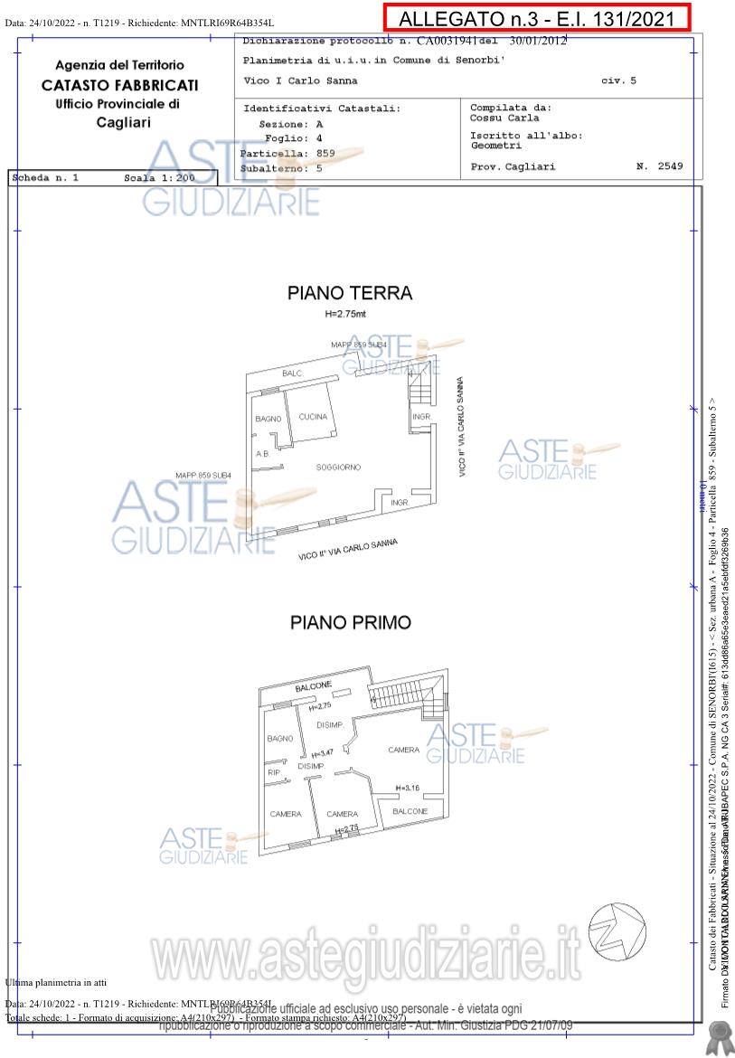 Vendita all'asta Senza incanto, con gara telematica asincrona - LOTTO UNICO: appartamento per civile abitazione posto nel Comune di Senorbì (SU) nel vico I° Carlo Sanna n°7, piano T-1 censito nel NCEU alla sezione A foglio 4, particella 859, subalterno 5, categoria A/2, classe 6, consistenza 6 vani, superficie totale mq.163, rendita €.488,05. Prezzo base € 85.120,00 (offerta minima € 63.840,00). Data inizio operazioni di vendita: 10/03/2026 ore 16:00. Giudice Valentina Frongia. Professionista delegato alla vendita Avv. Emanuele Lai - Email "emanulai@tiscali.it"; Cell. 3497898751; Tel. 070497101. Custode Giudiziario Ivg Cagliari - Email "ivg.visiteimmobili@tiscali.it"; Tel. 0702299036. Rif. Tribunale di Cagliari - Esecuzione immobiliare post legge 80 n. 131/2021