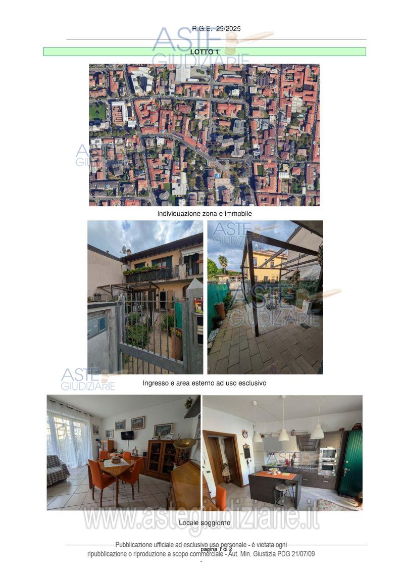 Vendita all'asta Senza incanto, con gara telematica sincrona - LOTTO UNICO: Appartamento di mq 56,20 per la quota di 1000/1000 di piena proprietà al piano terra composto da locale soggiorno con angolo cottura, locale camera e bagno, oltre a giardino in uso esclusivo. Prezzo base € 81.668,00 (offerta minima € 61.251,00). Data vendita 20/03/2026 ore 10:00. Professionista delegato alla vendita Avv. Annalisa Laura Rattini - Email "rattini@rattinivilla.it"; Tel. 3355932035. Custode Giudiziario Avv. Annalisa Laura Rattini - Email "rattini@rattinivilla.it"; Tel. 3355932035. Rif. Tribunale di Monza - Espropriazione immobiliare (cartabia) n. 29/2025
