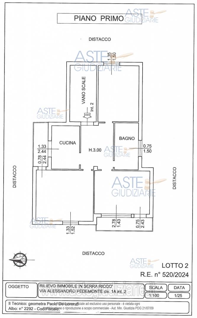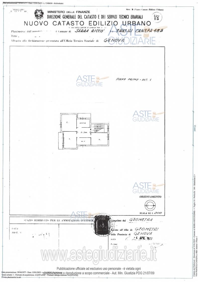 Vendita all'asta Senza incanto, con gara telematica sincrona mista - LOTTO 2: PIENA PROPRIETA' DI APPARTAMENTO AD USO ABITAZIONE A SERRA RICCO' (GE) IN VIA A. PEDEMONTE CIV. 1A, INT. 2 AL 1° PIANO COMPOSTO DA INGRESSO, BAGNO, CUCINA, SALA, DUE CAMERE E DUE POGGIOLI. SUPERFICIE CATASTALE 106 MQ CLASSE ENERGETICA G. Prezzo base € 74.138,00 (offerta minima € 55.603,50). Data vendita 10/12/2025 ore 12:00. Professionista delegato alla vendita Avv. Elio Sbisa - Email "elio.sbisa1@gmail.com"; Cell. 3395666960. Custode Giudiziario Ivg Sovemo Srl - Email "visitegenova@sovemo.com"; Tel. 0105299253. Rif. Tribunale di Genova - Esecuzione immobiliare post legge 80 n. 520/2024