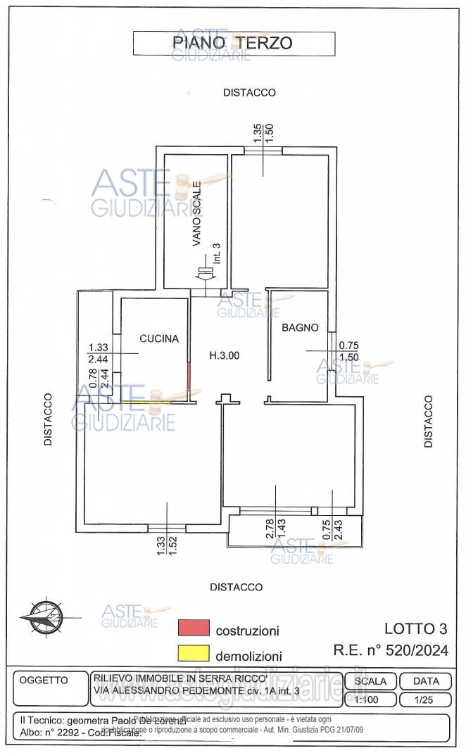 Vendita all'asta Senza incanto, con gara telematica sincrona mista - LOTTO 3: PIENA PROPRIETA' DI APPARTAMENTO AD USO ABITAZIONE A SERRA RICCO' (GE) IN VIA A. PEDEMONTE CIV. 1A, INT. 3 AL 2° PIANO COMPOSTO DA INGRESSO, BAGNO, CUCINA, SALA, DUE CAMERE E DUE POGGIOLI. SUPERFICIE CATASTALE 105 MQ CLASSE ENERGETICA F. Prezzo base € 66.103,00 (offerta minima € 49.577,25). Data vendita 10/12/2025 ore 12:00. Professionista delegato alla vendita Avv. Elio Sbisa - Email "elio.sbisa1@gmail.com"; Cell. 3395666960. Custode Giudiziario Ivg Sovemo Srl - Email "visitegenova@sovemo.com"; Tel. 0105299253. Rif. Tribunale di Genova - Esecuzione immobiliare post legge 80 n. 520/2024