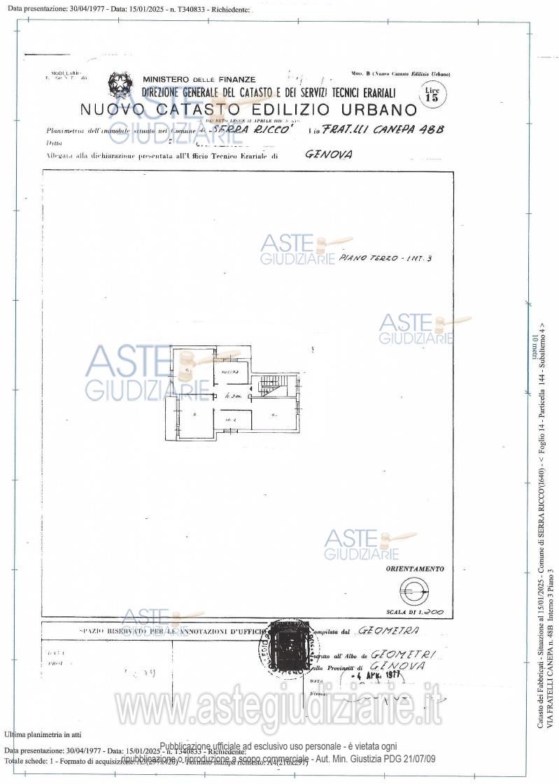 Vendita all'asta Senza incanto, con gara telematica sincrona mista - LOTTO 4: PIENA PROPRIETA' DI APPARTAMENTO AD USO ABITAZIONE A SERRA RICCO' (GE) IN VIA A. PEDEMONTE CIV. 1A, INT. 4 AL 3° PIANO COMPOSTO DA INGRESSO, BAGNO, CUCINA, SALA, DUE CAMERE E DUE POGGIOLI. SUPERFICIE CATASTALE 106 MQ CLASSE ENERGETICA G. Prezzo base € 74.319,00 (offerta minima € 55.739,25). Data vendita 10/12/2025 ore 12:00. Professionista delegato alla vendita Avv. Elio Sbisa - Email "elio.sbisa1@gmail.com"; Cell. 3395666960. Custode Giudiziario Ivg Sovemo Srl - Email "visitegenova@sovemo.com"; Tel. 0105299253. Rif. Tribunale di Genova - Esecuzione immobiliare post legge 80 n. 520/2024