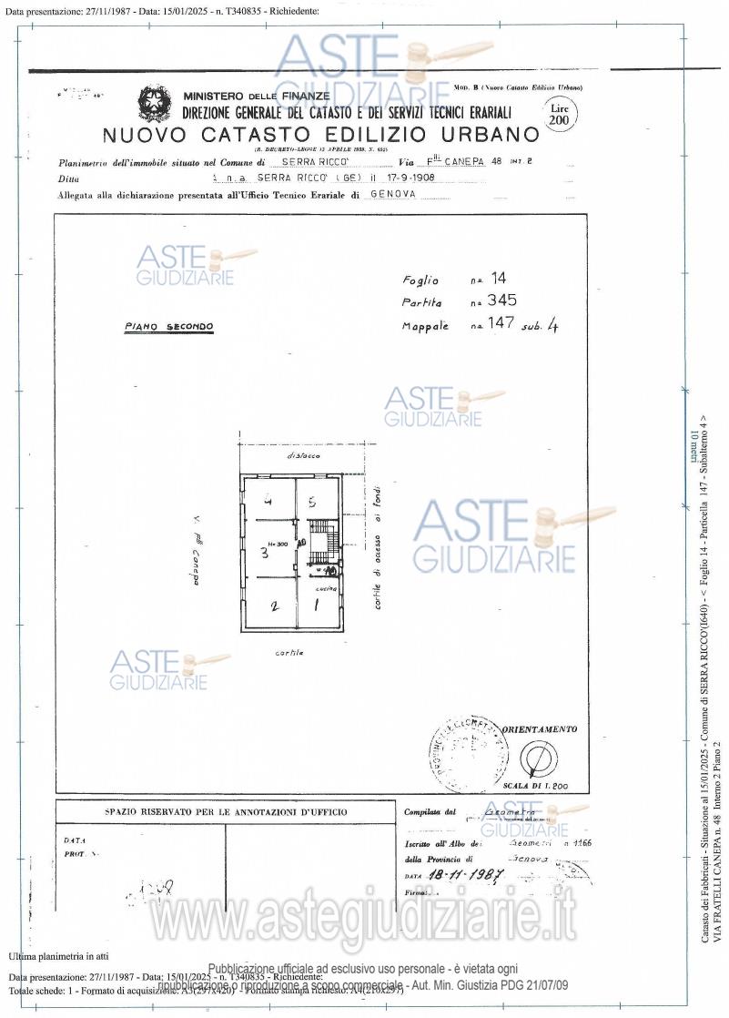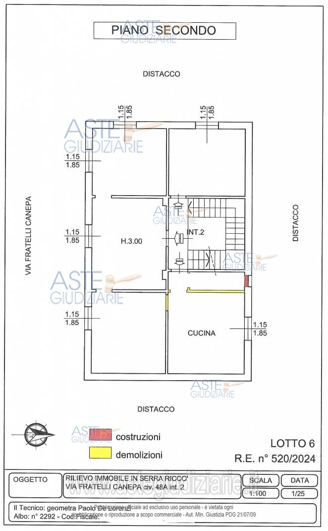 Vendita all'asta Senza incanto, con gara telematica sincrona mista - LOTTO 6: PIENA PROPRIETA' DI APPARTAMENTO AD USO ABITAZIONE A SERRA RICC0' (GE) IN VIA FRATELLI CANEPA CIV. 48 A, INT. 2 AL 2° PIANO COMPOSTO DA INGRESSO, CUCINA E TRE CAMERE, IL BAGNO E' STATO DEMOLITO. SUPERFICIE CATASTALE 111 MQ. CLASSE ENERGETICA G. Prezzo base € 63.597,00 (offerta minima € 47.697,75). Data vendita 10/12/2025 ore 12:00. Professionista delegato alla vendita Avv. Elio Sbisa - Email "elio.sbisa1@gmail.com"; Cell. 3395666960. Custode Giudiziario Ivg Sovemo Srl - Email "visitegenova@sovemo.com"; Tel. 0105299253. Rif. Tribunale di Genova - Esecuzione immobiliare post legge 80 n. 520/2024