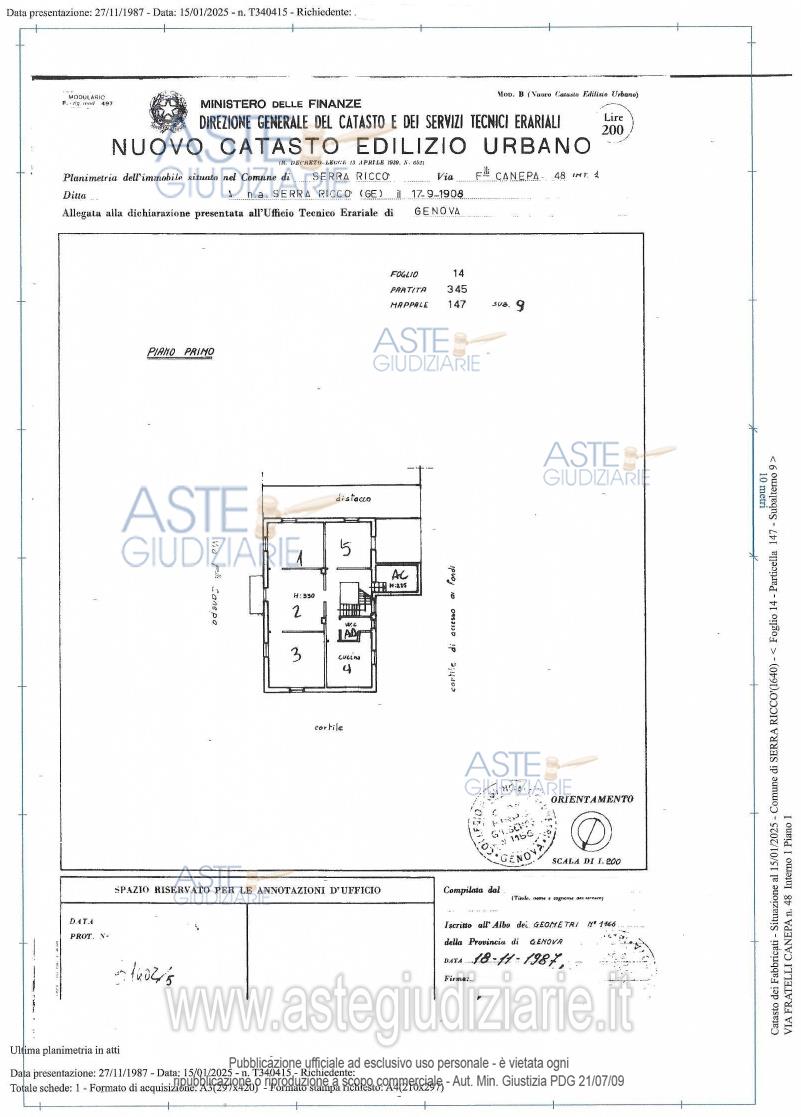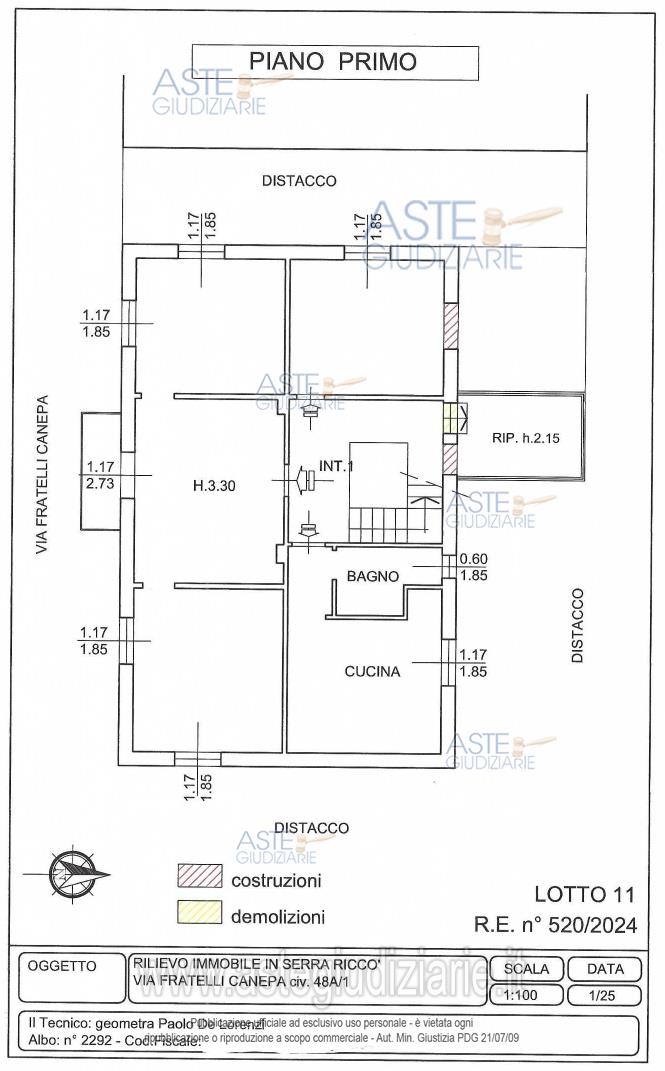 Vendita all'asta Senza incanto, con gara telematica sincrona mista - LOTTO 11: PIENA PROPRIETA' DI APPARTAMENTO AD USO ABITAZIONE A SERRA RICCO' (GE) VIA FRATELLI CANEPA CIV. 48 A, INT. 1 AL PRIMO PIANO, COMPOSTO DA INGRESSO, BAGNO, CUCINA, TRE CAMERE, POGGIOLO E LOCALE RIPOSTIGLIO. SUPERFICIE CATASTALE 135 MQ. CLASSE ENERGETICA G. Prezzo base € 69.246,00 (offerta minima € 51.934,50). Data vendita 10/12/2025 ore 12:00. Professionista delegato alla vendita Avv. Elio Sbisa - Email "elio.sbisa1@gmail.com"; Cell. 3395666960. Custode Giudiziario Ivg Sovemo Srl - Email "visitegenova@sovemo.com"; Tel. 0105299253. Rif. Tribunale di Genova - Esecuzione immobiliare post legge 80 n. 520/2024