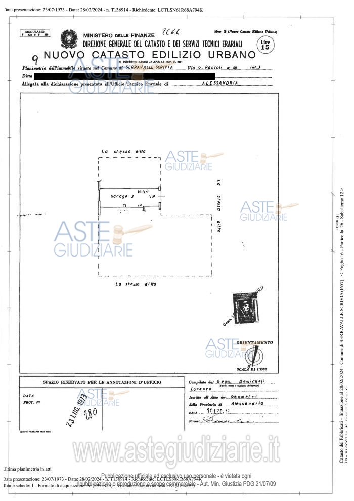 Vendita in attesa dell'emissione del nuovo bando d'asta. LOTTO UNICO: In Comune di Serravalle Scrivia (AL), via G. Pascoli n. 48, appartamento posto all’ultimo piano di una palazzina con annessa cantina posta al piano seminterrato, attualmente accorpata al box auto di proprietà. Ultimo prezzo base € 20.900,00 (offerta minima € 15.675,00). Giudice Dott. Michele Delli Paoli. Professionista delegato alla vendita Avv. Marcella Fasciolo - Email "marcellafasciolo@libero.it"; Tel. 014375670. Custode Giudiziario Avv. Marcella Fasciolo - Email "marcellafasciolo@libero.it"; Tel. 014375670. Rif. Tribunale di Alessandria - Espropriazione immobiliare (cartabia) n. 319/2023