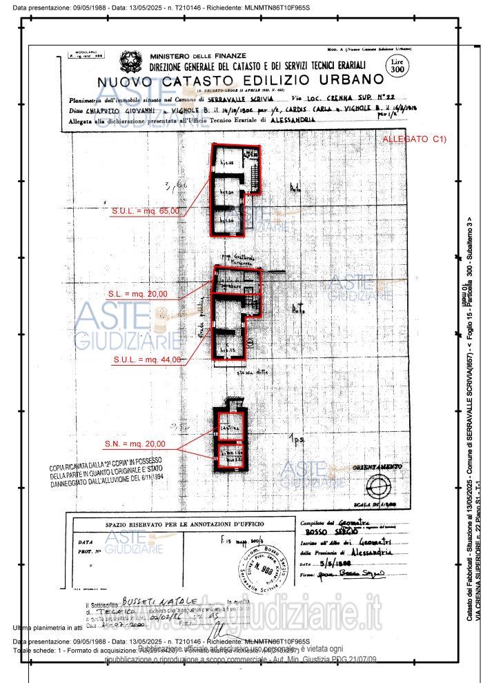 Vendita all'asta Senza incanto - LOTTO UNICO: Lotto composto da fabbricato residenziale di ca mq 103,00 e box di ca mq 22,00, costruito agli inizi del 1900 di tre piani (due fuori terra) ed un box (piano interrato) facenti parte del tessuto storico della piccola frazione Crenna del Comune di Serravalle Scrivia. Al piano terra è composto da: cucina, soggiorno, piccolo disimpegno/ingresso e locale di sgombero; al piano primo da: tre camere, piccolo bagno e piccolo terrazzino. Libero. Prezzo base € 25.500,00 (offerta minima € 19.125,00). Data vendita 01/07/2026 ore 16:00. Giudice Dott. Roberta Brera. Professionista delegato alla vendita Avv. Alessandra Fava - Email "alessandrafava@ymail.com"; Tel. 3481322809. Custode Giudiziario Avv. Alessandra Fava - Email "alessandrafava@ymail.com"; Tel. 3481322809. Rif. Tribunale di Alessandria - Espropriazione immobiliare (cartabia) n. 31/2025