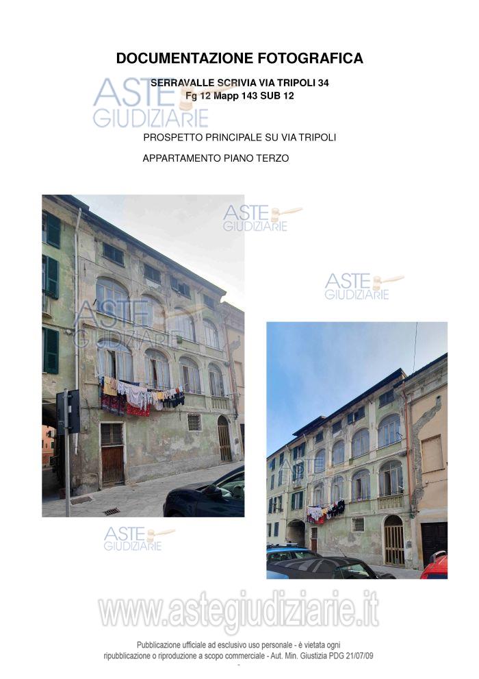 Vendita all'asta Senza incanto - LOTTO 1: Appartamento sito nel centro storico di Serravalle Scrivia all'interno di un palazzo storico posto al 4 piano mansardato, composto da soggiorno con angolo cottura, camera, disimpegno e servizio igienico. Fanno parte della medesima proprietà una cantina e un ripostiglio (sottoscala) posti al piano terzo e sottotetto non abitabile al piano 4; risulta in stato di abbandono. Prezzo base € 16.200,00 (offerta minima € 12.150,00). Data vendita 28/07/2026 ore 10:30. Giudice: Dott. Elisabetta Bianco.
