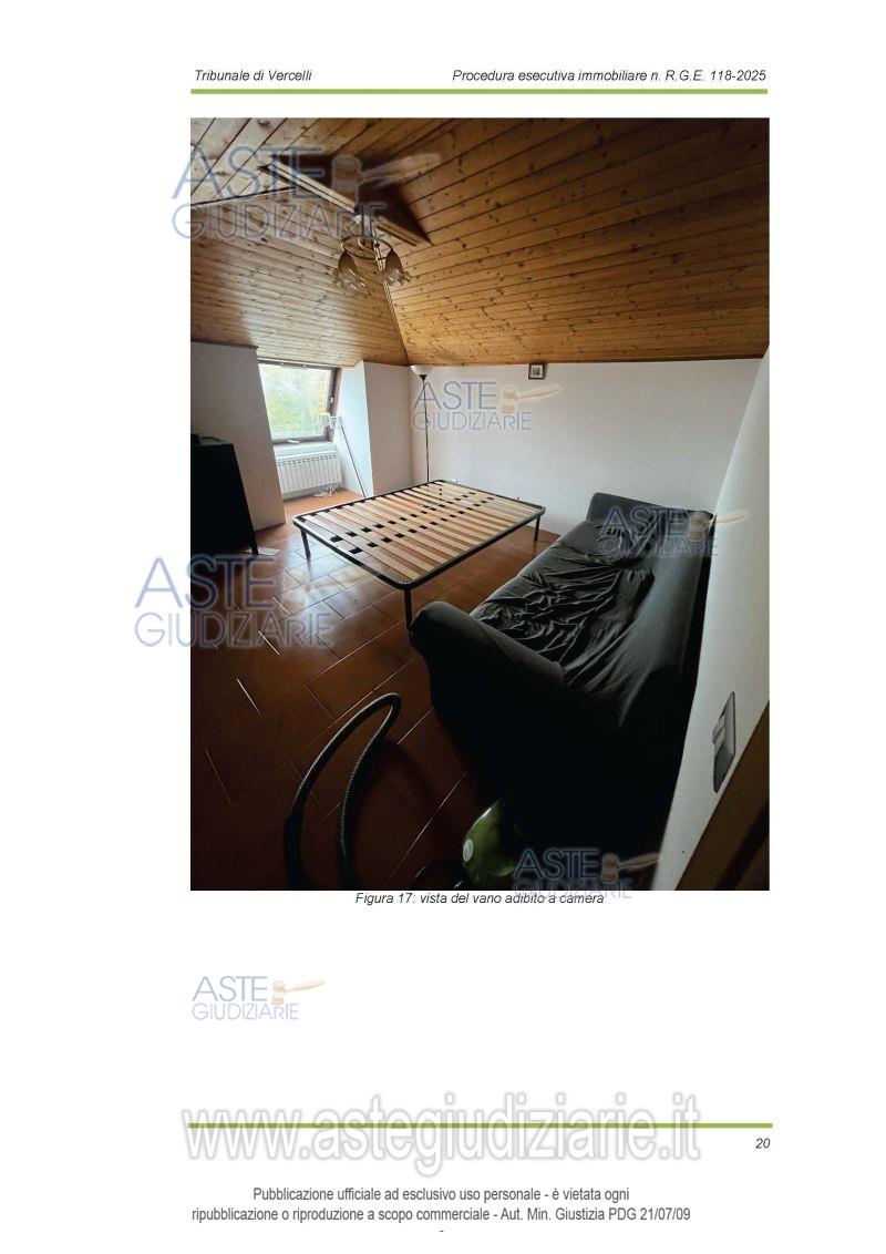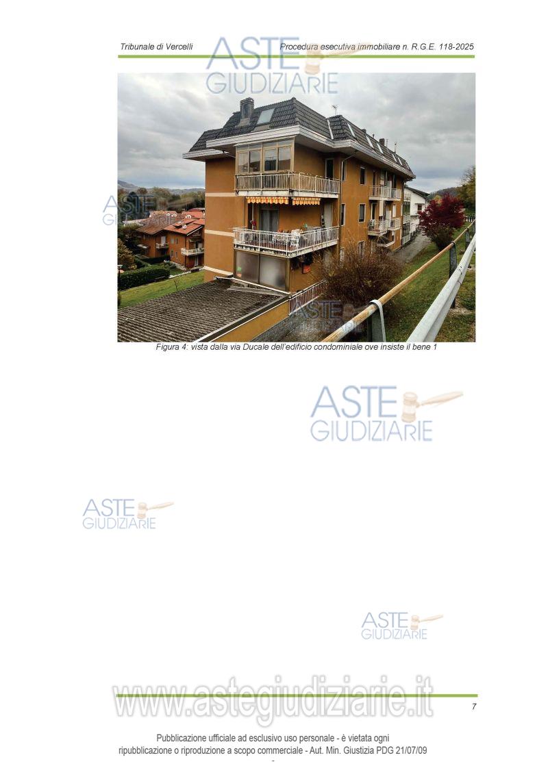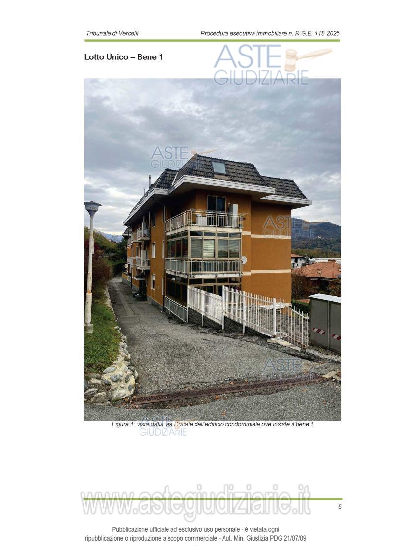 Vendita all'asta Senza incanto, con gara telematica asincrona - LOTTO UNICO: Alloggio mansardato, ubicato al piano quarto fuori terra (sottotetto), composto da ingresso, cucina, soggiorno, disimpegno, due camere e bagno inserito in edificio condominiale a destinazione d’uso residenziale di tipo isolato, a quattro piani fuori terra oltre uno seminterrato, libero su quattro lati, avente principale accesso pedonale e carraio dalla soprastante e rialzata via Ducale n. 19. Non è presente ascensore. Riscaldamento autonomo a gas naturale. Prezzo base € 30.000,00 (offerta minima € 22.500,00). Data inizio operazioni di vendita: 10/06/2026 ore 10:30. Professionista delegato alla vendita Avv. Pietro Caire - Email "studiolegale@cairebazzi.it"; Tel. 0142452059. Custode Giudiziario Avv. Pietro Caire - Email "studiolegale@cairebazzi.it"; Tel. 0142452059. Rif. Tribunale di Vercelli - Espropriazione immobiliare (cartabia) n. 118/2025