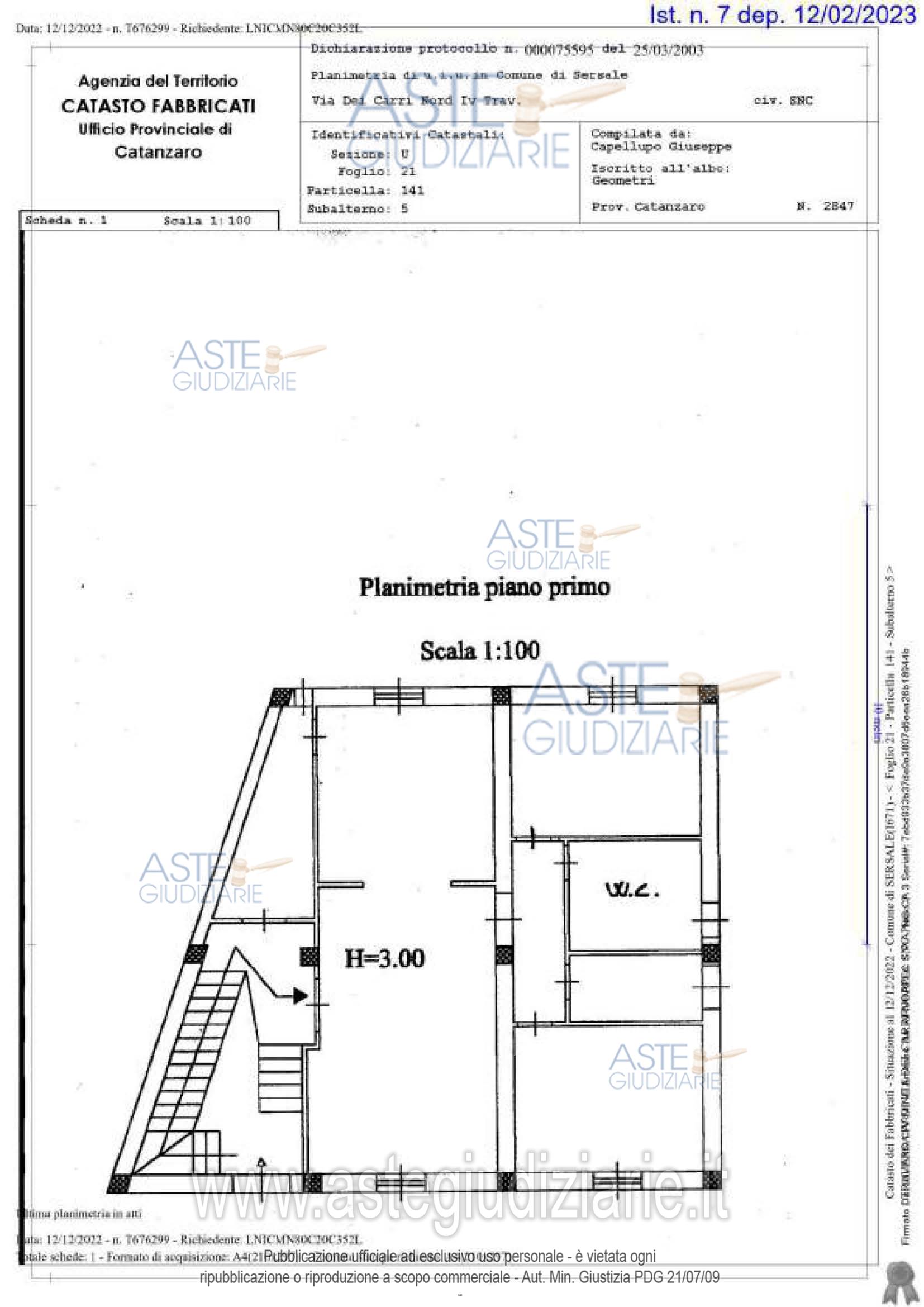 Vendita all'asta Senza incanto, con gara telematica asincrona - LOTTO 1: Appartamento su unico livello, al piano primo di un edificio isolato, superficie coperta ca mq 135, composta da ampio salone d'ingresso, cucina, disimpegno, 2 bagni, 2 camere da letto, 2 balconi. Presenza opera abusiva, come indicato in avviso, sanabile. Prezzo base € 27.100,00 (offerta minima € 20.400,00). Data inizio operazioni di vendita: 11/11/2025 ore 12:00. Giudice Dott. Francesca Rinaldi. Professionista delegato alla vendita Avv. Emilio Reitano Pandullo - Email "emilio.reitanopandullo@gmail.com"; Tel. 0961724399. Custode Giudiziario Avv. Emilio Reitano Pandullo - Email "emilio.reitanopandullo@gmail.com"; Tel. 0961724399. Rif. Tribunale di Catanzaro - Esecuzione immobiliare post legge 80 n. 58/2022