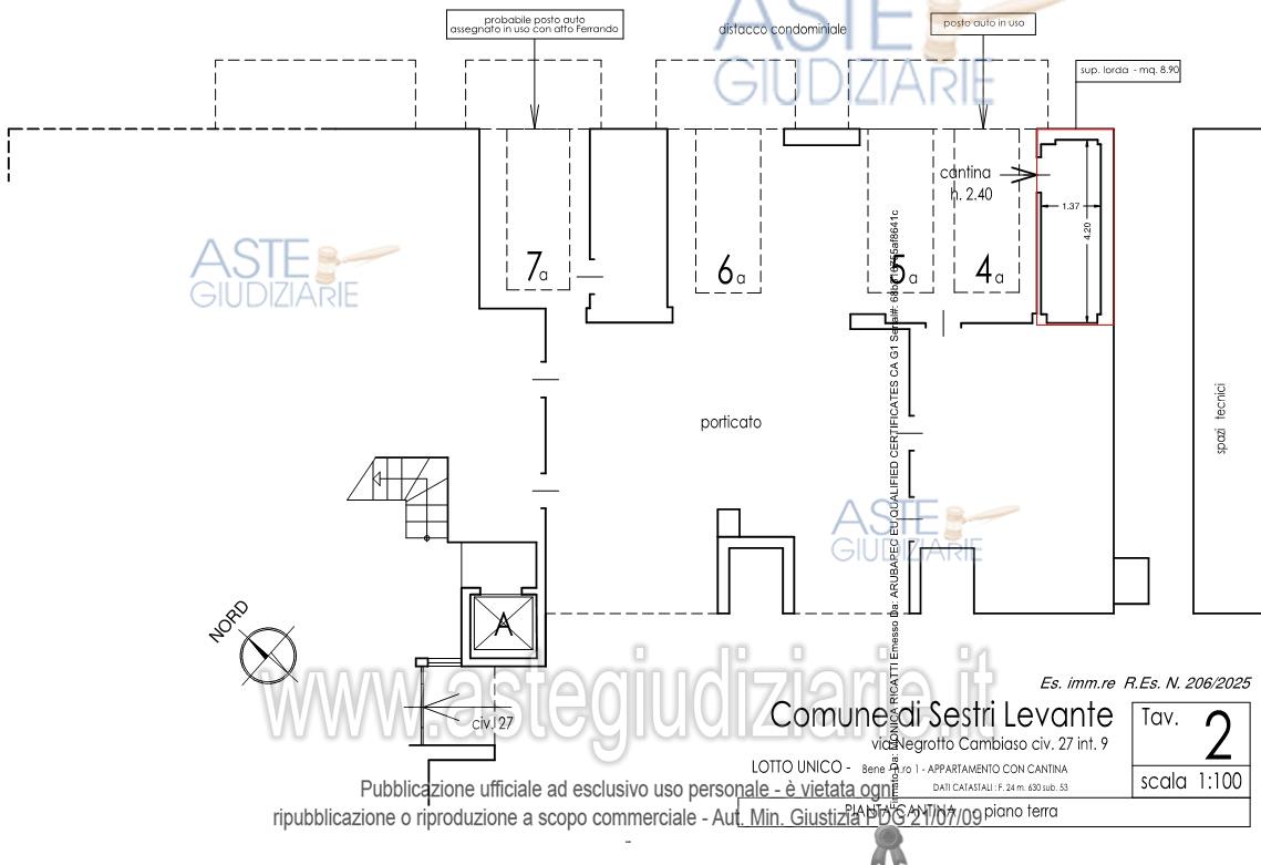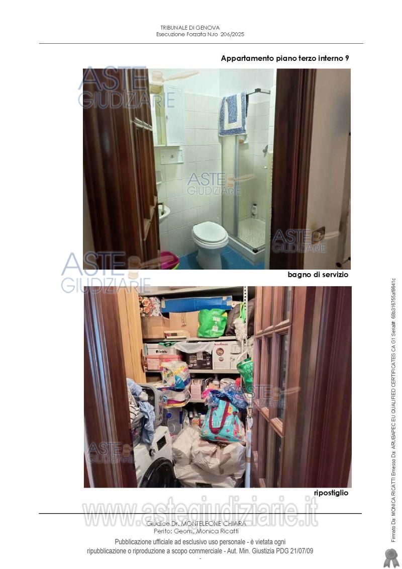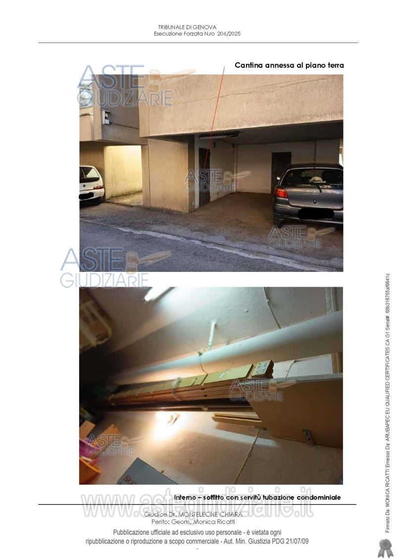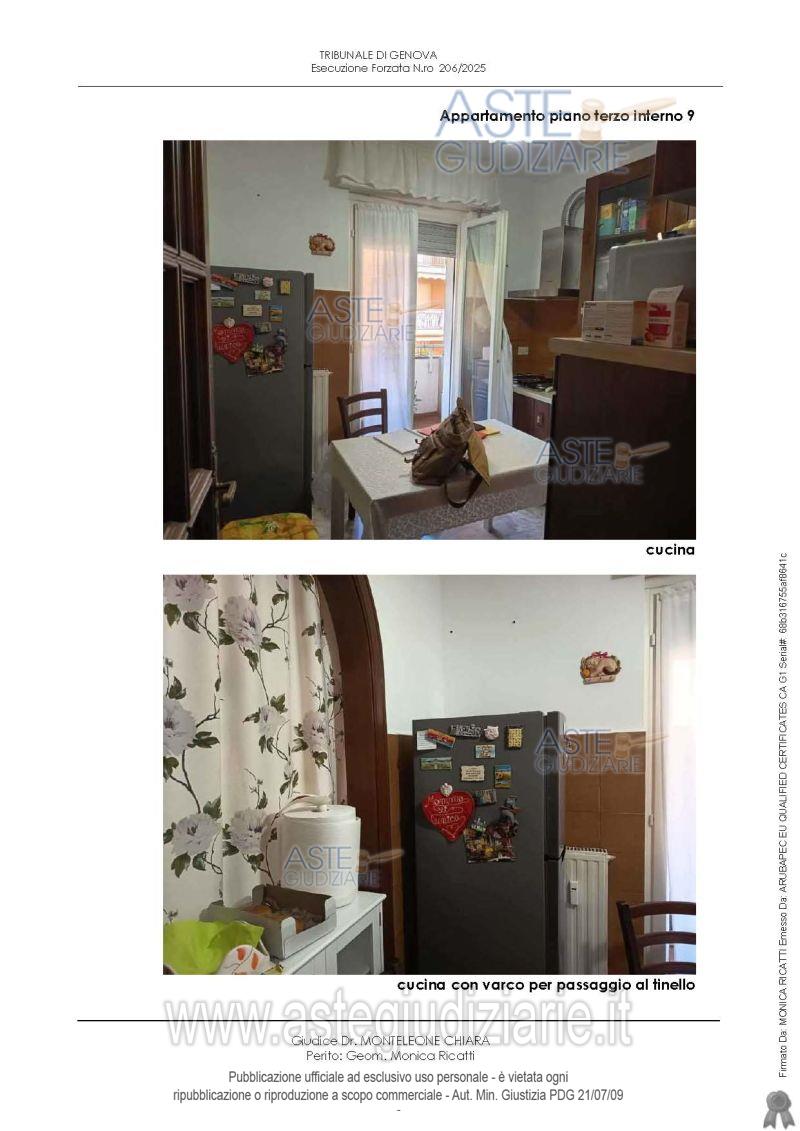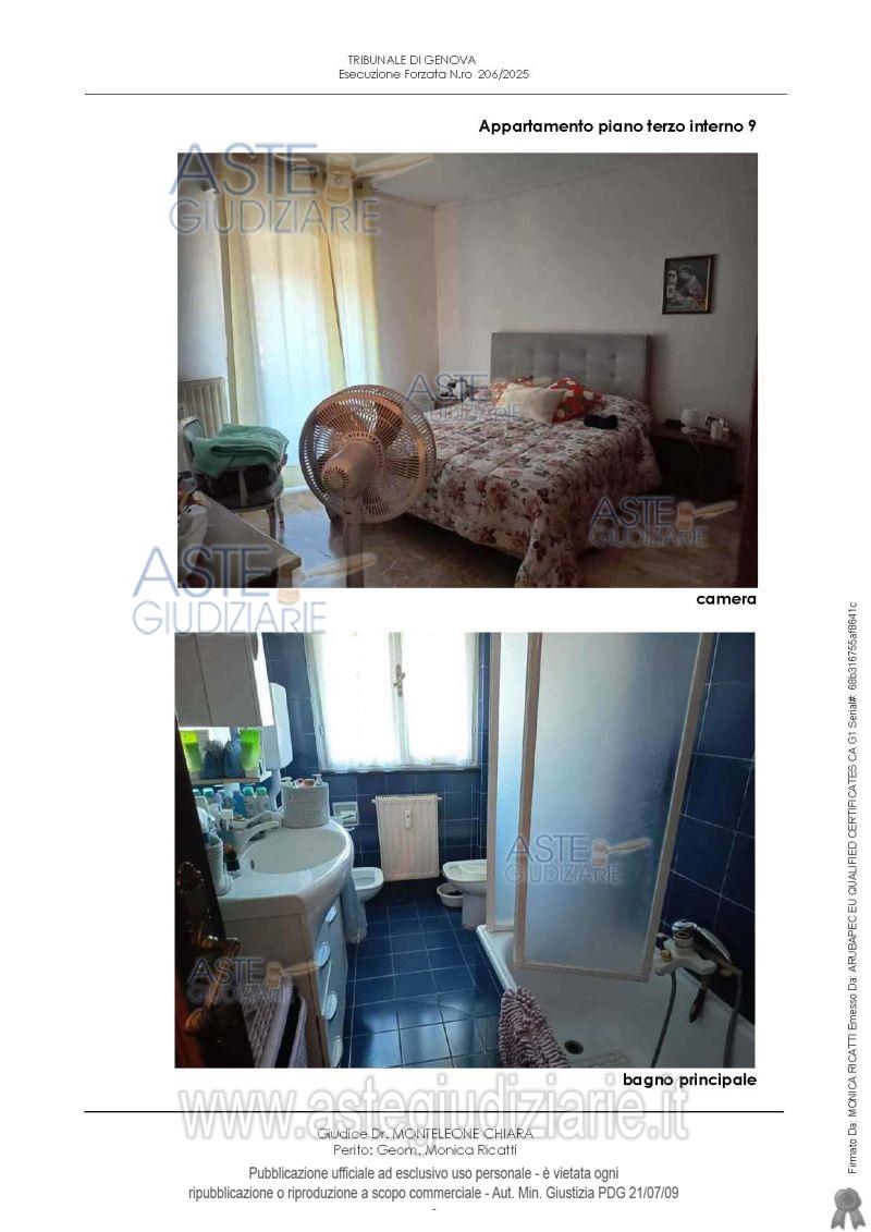 Vendita all'asta Senza incanto, con gara telematica sincrona mista - LOTTO UNICO: Appartamento distinto con int. 9, piano terzo, composto da ingresso, disimpegno, cucina/tinello, soggiorno, due camere, ripostiglio, due bagni e quattro terrazzi, cantina al piano terra, un posto auto nell’area di parcheggio dei fondi. Il fabbricato è dotato di ascensore. L’appartamento è situato nel fabbricato “B” del Condominio LA TECA SECONDA (Via Cambiaso 17-35). Prezzo base € 168.000,00 (offerta minima € 126.000,00). Data vendita 23/04/2026 ore 16:00. Giudice Dott. Chiara Monteleone. Professionista delegato alla vendita Dott. Giuseppe Balza - Email "balza.dott.giuseppe@gmail.com"; Cell. 3396547706; Tel. 3396547706. Custode Giudiziario So.Ve.Mo. Srl - Email "visitegenova@sovemo.com"; Tel. 0105299253. Rif. Tribunale di Genova - Espropriazione immobiliare (cartabia) n. 206/2025