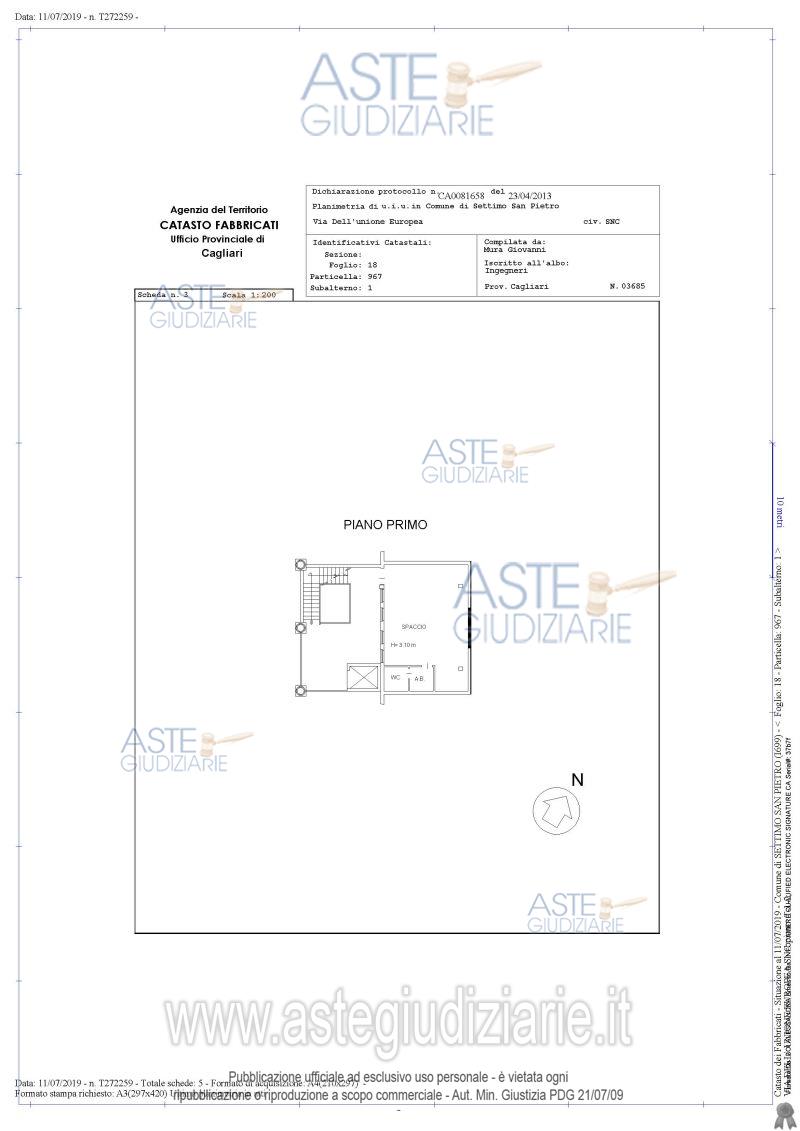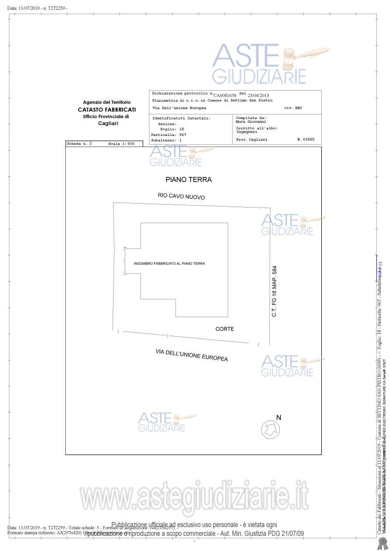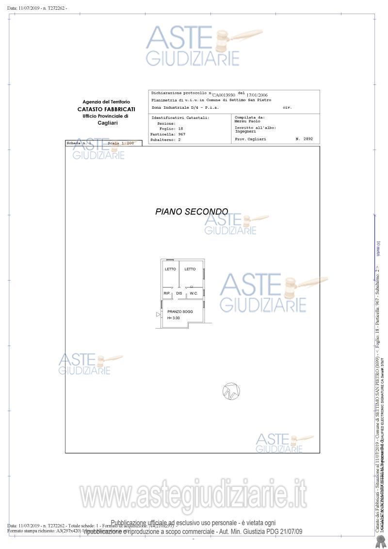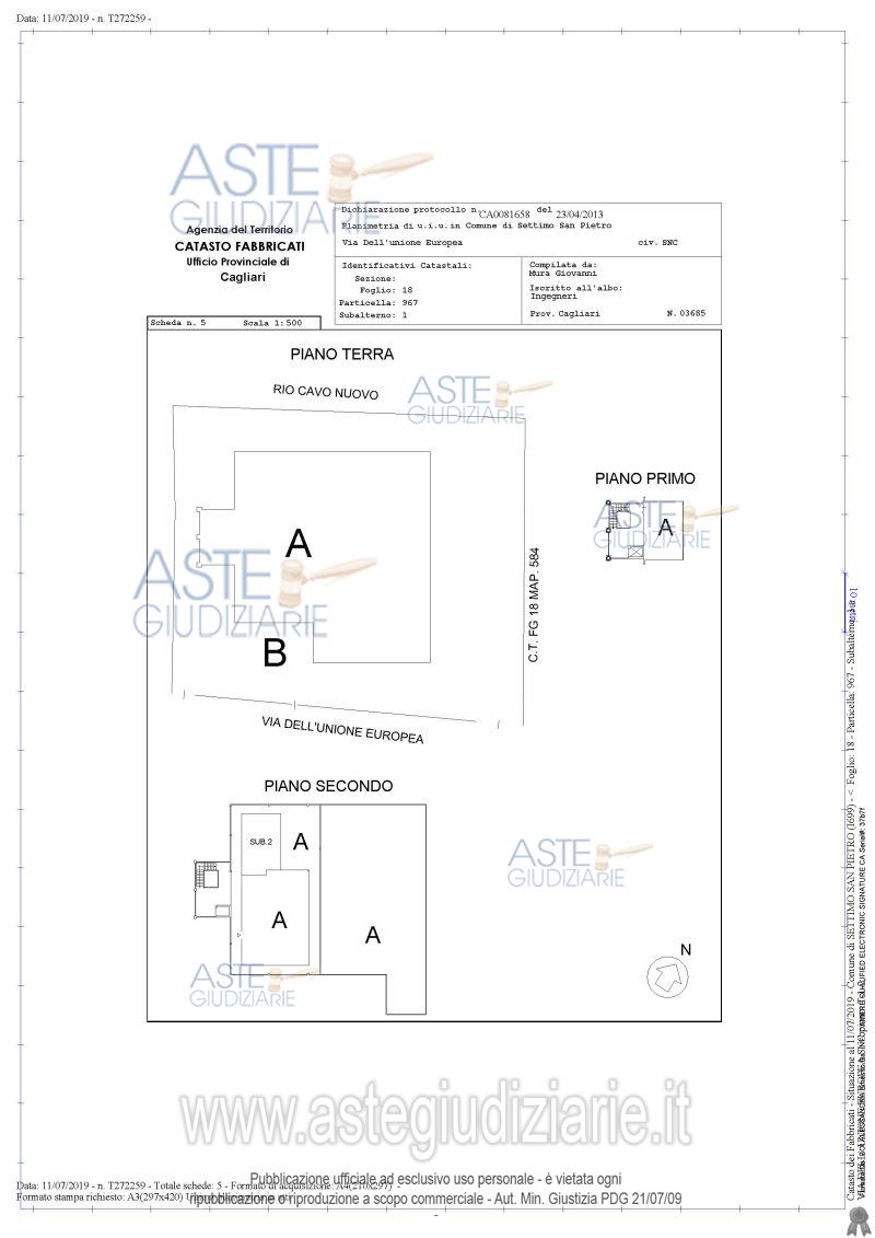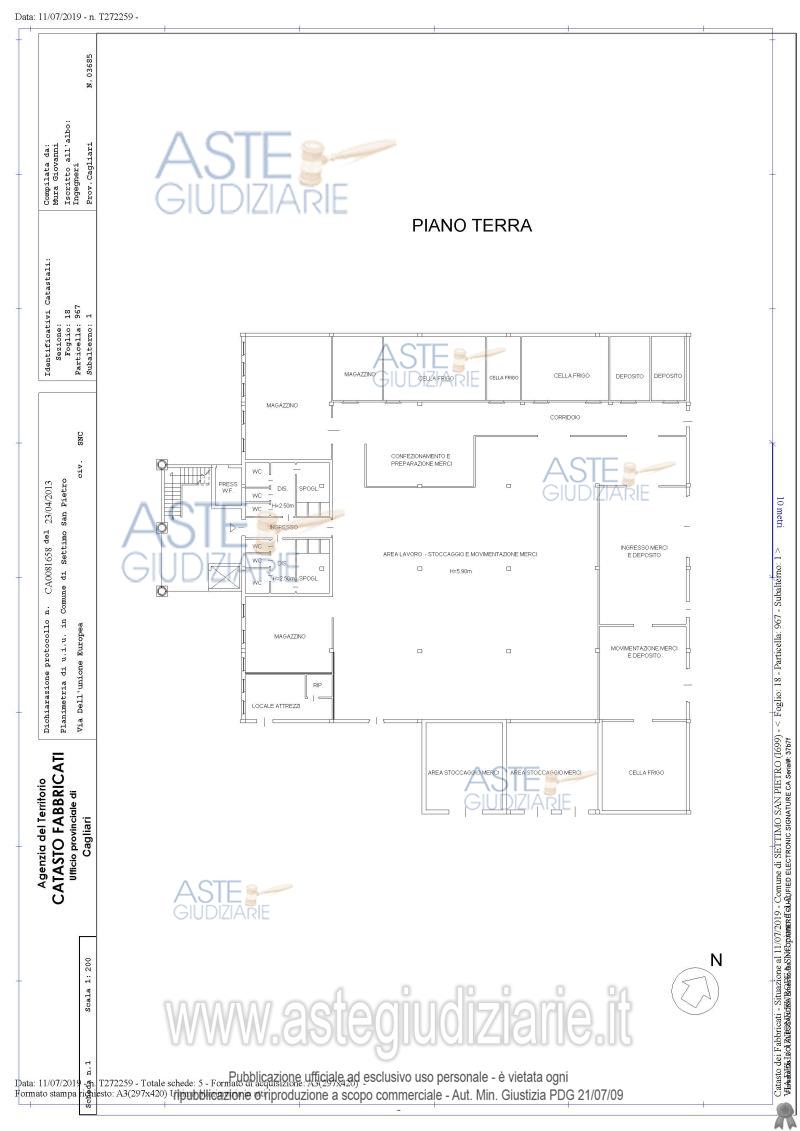 Vendita all'asta Senza incanto, con gara telematica asincrona - LOTTO UNICO: LOTTO Unico costituito dalla piena ed intera proprietà dei seguenti immobili: 1) fabbricato industriale sito a Settimo San Pietro (Cagliari), in via dell'Unione Europea snc, piano T, 1 e 2, con annessa area cortilizia, composto da diversi locali destinati ad opificio, superficie complessiva di 1.548,51 mq;2) appartamento ad uso abitativo, sito a Settimo San Pietro, via dell'Unione Europea snc, piano secondo, composto da soggiorno, due camere, disimpegno, bagno e ripostiglio, superficie di 69,14 mq. Prezzo base € 318.240,00 (offerta minima € 238.680,00). Data inizio operazioni di vendita: 03/03/2026 ore 16:00. Giudice Valentina Frongia. Professionista delegato alla vendita Avv. Marco Di Fortunato - Email "marcodifortunato@gmail.com"; Cell. 3356185295. Custode Giudiziario Ivg Cagliari - Email "ivg.visiteimmobili@tiscali.it"; Tel. 0702299036. Rif. Tribunale di Cagliari - Esecuzione immobiliare post legge 80 n. 353/2021