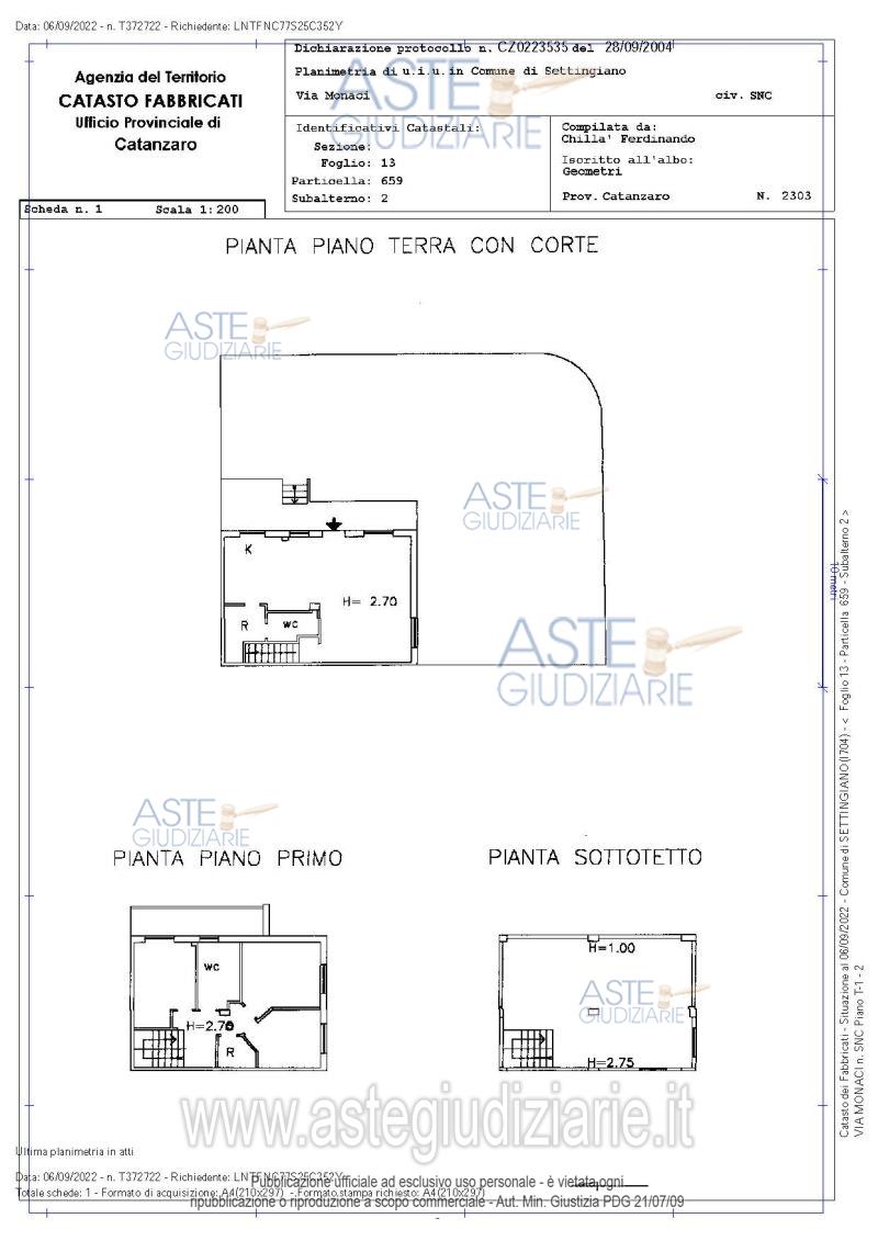 Vendita all'asta Senza incanto, con gara telematica asincrona - LOTTO UNICO: Eigentum an der Oberfläche für 99 Jahre ab dem 04/06/2005, erneuerbar für die gleiche Dauer, für einen Teil einer Viertelfamilien-Villa mit Zugang von der Via Monaci snc, bestehend aus: Eingangs-Wohnküche, Abstellraum und überdachte Terrasse im Erdgeschoss; Flur, ein Badezimmer, 3 Schlafzimmer und Balkon im ersten Stock; zwei Abstellräume und ein Badezimmer im Dachgeschoss im ersten Stock; vervollständigt wird das Inventar durch einen exklusiven Hof. . Prezzo base € 51.840,00 (offerta minima € 38.880,00). Data inizio operazioni di vendita: 11/12/2025 ore 10:30. Giudice Dott. Luca Mercuri. Professionista delegato alla vendita Adr Med Srl. Custode Giudiziario Aste Giudiziarie Inlinea Spa - Email "vendite@astegiudiziarie.it"; Tel. 0586 201480. Rif. Tribunale di Catanzaro - Liquidazione controllata(cci) n. 5/2023