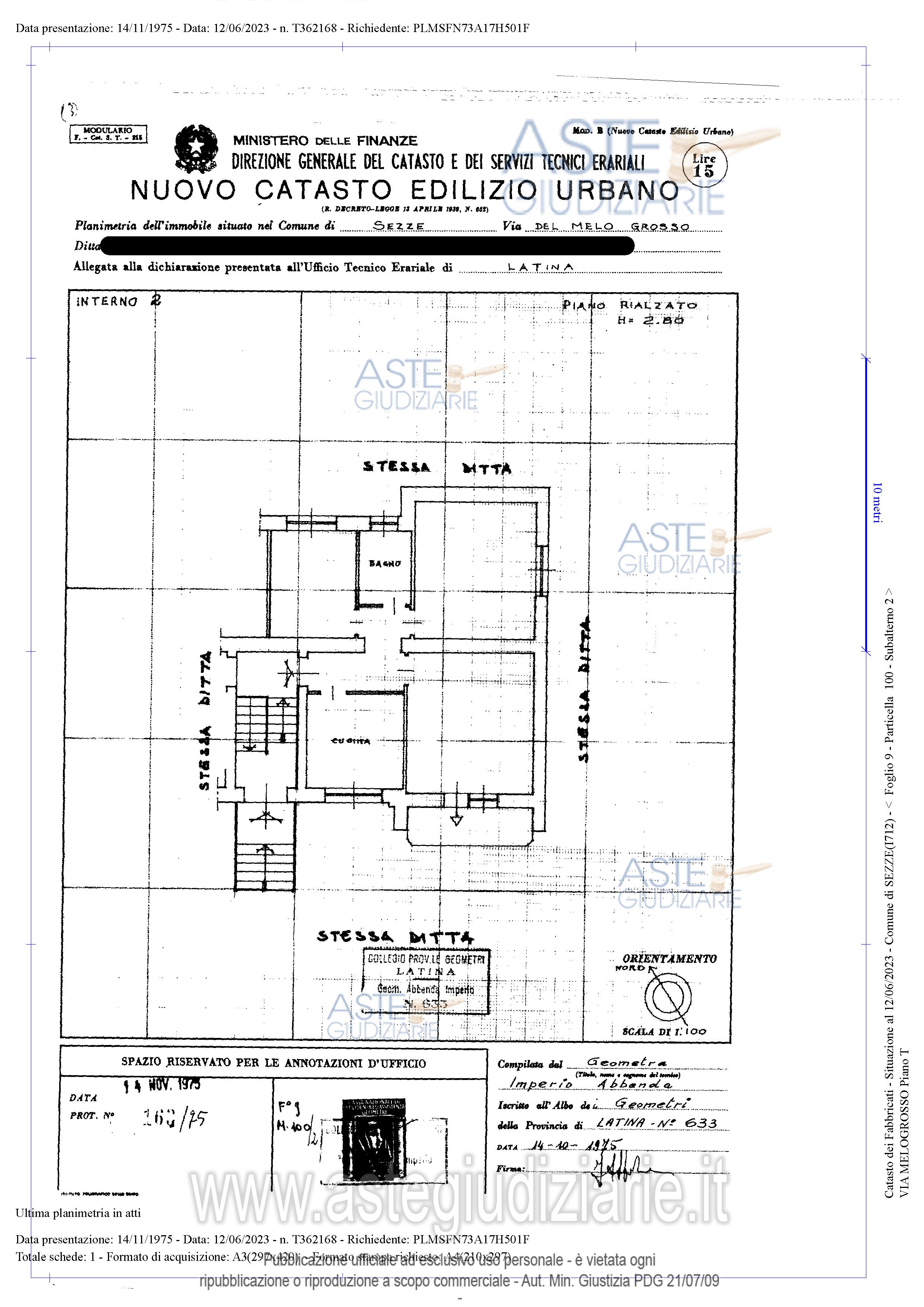 Vendita all'asta Senza incanto, con gara telematica asincrona - LOTTO UNICO: Appartamento ubicato a Sezze (LT) - Via Melogrosso snc I beni in oggetto sono costituiti da un'abitazione sita nel Comune di Sezze e precisamente un'unità immobiliare posta al piano terra rialzato di una palazzina di 2 piani fuori terra, con annesse aree condominiali (vano scala e corte comune), composta da pranzo-soggiorno, cucina, due stanze da letto e bagno Identificato al catasto Fabbricati - Fg. 9, Part. 100, Sub. 2, Categoria A2. L'immobile viene posto in vendita per il diritto di Proprietà (1/1). Prezzo base € 19.617,19 (offerta minima € 14.712,90). Data inizio operazioni di vendita: 07/10/2025 ore 16:00. Professionista delegato alla vendita Rag. Dante Stravato - Email "stravato@libero.it"; Cell. 3479337393; Tel. 0771513994. Custode Giudiziario Rag. Dante Stravato - Email "stravato@libero.it"; Cell. 3479337393; Tel. 0771513994. Rif. Tribunale di Latina - Esecuzione immobiliare post legge 80 n. 221/2022