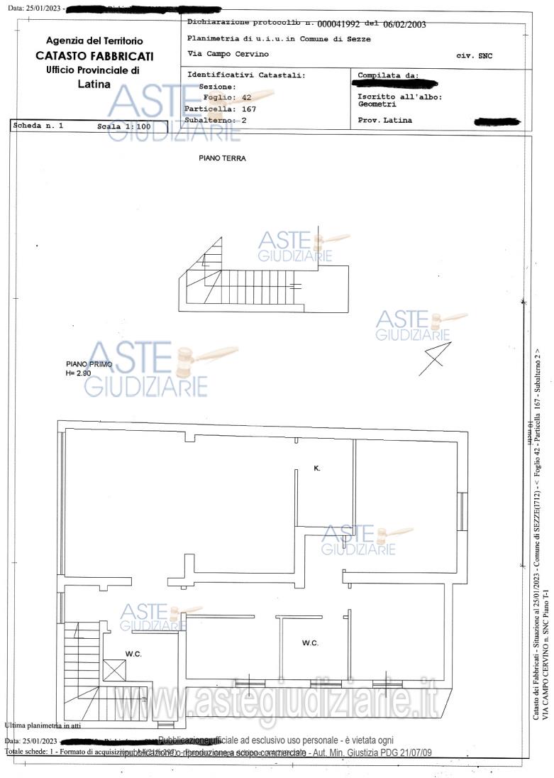 Custode Giudiziario: Dott. Massimo Gennari - Email "massi.gen@tiscali.it"; Tel. 0773/471082; Cell. 339/4558063.