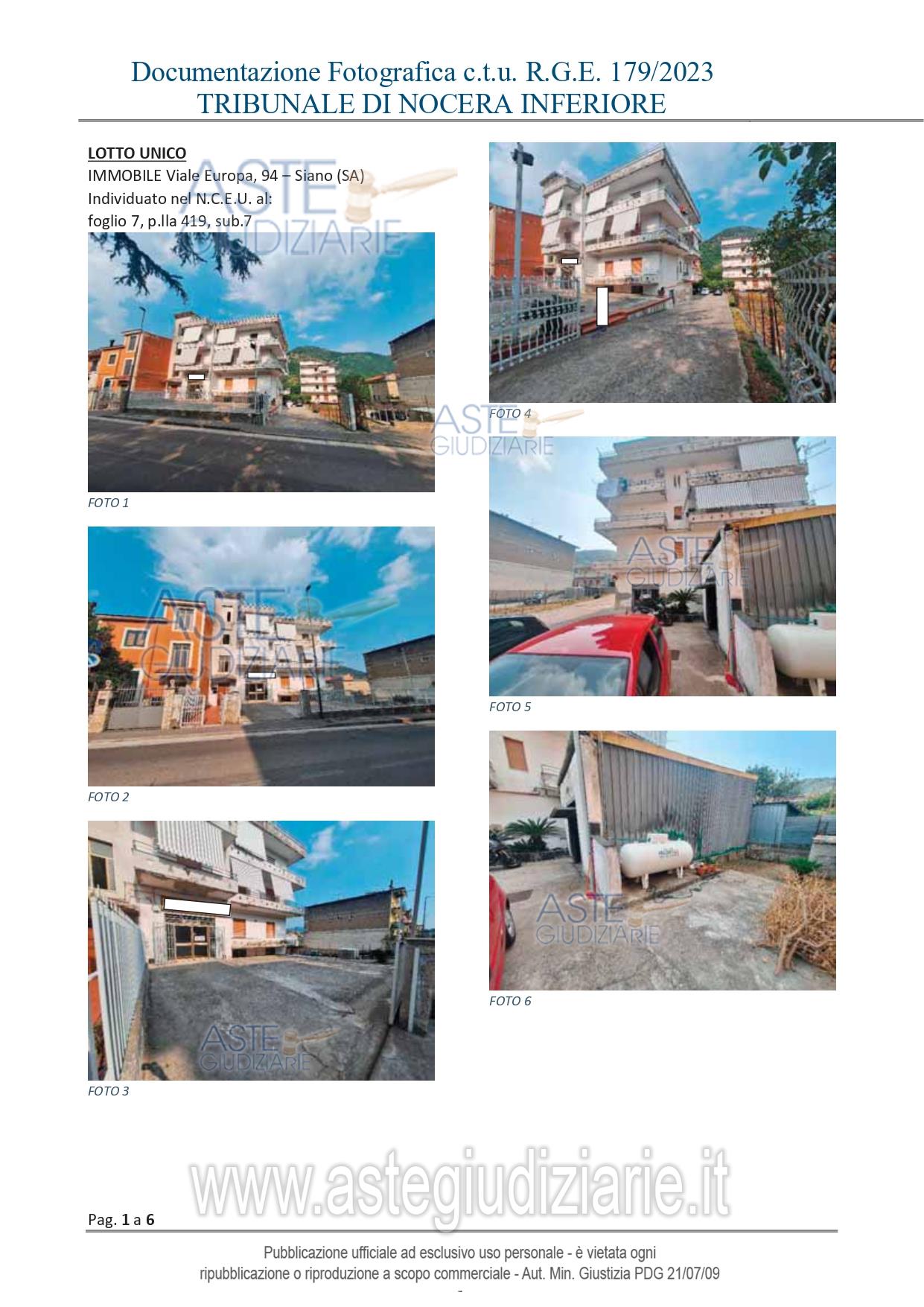 Vendita all'asta Senza incanto, con gara telematica asincrona - LOTTO UNICO: Abitazione civile di ca mq 100 ubicata nel Comune di Siano, al Viale Europa n. 94 ubicato al terzo piano . Prezzo base € 106.000,00 (offerta minima € 79.500,00). Data inizio operazioni di vendita: 05/05/2026 ore 12:00. Professionista delegato alla vendita Avv. Giovanna Bianco - Email "studio@studiolegalebianco.eu"; Cell. 3357329901; Tel. 089229633. Custode Giudiziario Avv. Giovanna Bianco - Email "studio@studiolegalebianco.eu"; Cell. 3357329901; Tel. 089229633. Rif. Tribunale di Nocera Inferiore - Espropriazione immobiliare (cartabia) n. 179/2023