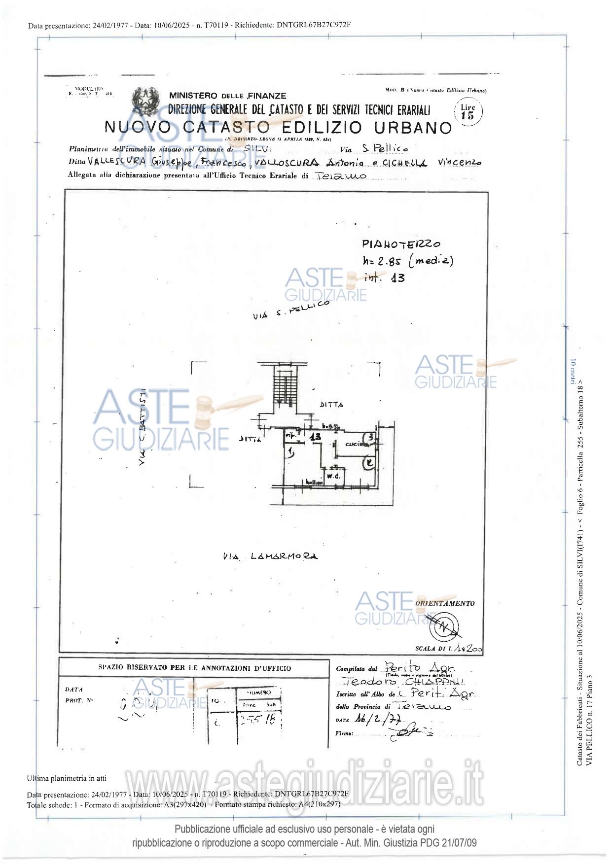 Vendita all'asta Senza incanto, con gara telematica asincrona - LOTTO UNICO: Appartamento di civile abitazione sito nel Comune di Silvi (TE) alla Via Pellico, 17, posto al piano terzo della superficie catastale di Mq. 64,00 circa, costituito da ingresso-soggiorno-cucina, disimpegno, bagno, camera da letto, lavanderia e balcone della superficie di Mq. 30,00 circa. Prezzo base € 51.000,00 (offerta minima € 38.250,00). Data inizio operazioni di vendita: 27/05/2026 ore 11:00. Professionista delegato alla vendita Dott. Antonello Genua - Email "antonellogenua@virgilio.it". Custode Giudiziario Dott. Antonello Genua - Email "antonellogenua@virgilio.it". Rif. Tribunale di Teramo - Espropriazione immobiliare (cartabia) n. 68/2025