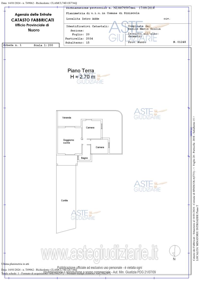 Vendita all'asta Senza incanto, con gara telematica asincrona - LOTTO 6: Lotto 6: Appartamento ubicato a Siniscola (NU) - Loc. Minatoriu Intro Adde, piano T, Identificato al catasto Fabbricati - Fg. 20, Part. 2034, Sub. 15, Categoria A3. Prezzo base € 88.000,00 (offerta minima € 66.000,00). Data inizio operazioni di vendita: 27/05/2026 ore 12:00. Professionista delegato alla vendita Avv. Marcello Antonio Costaggiu - Email "marcostaggiu@gmail.com"; Cell. 3299789799; Tel. 078431311. Custode Giudiziario Ivg Tempio Pausania-Nuoro - Email "visite.ivgnuoro@gmail.com"; Tel. 079630505. Rif. Tribunale di Nuoro - Espropriazione immobiliare (cartabia) n. 16/2023