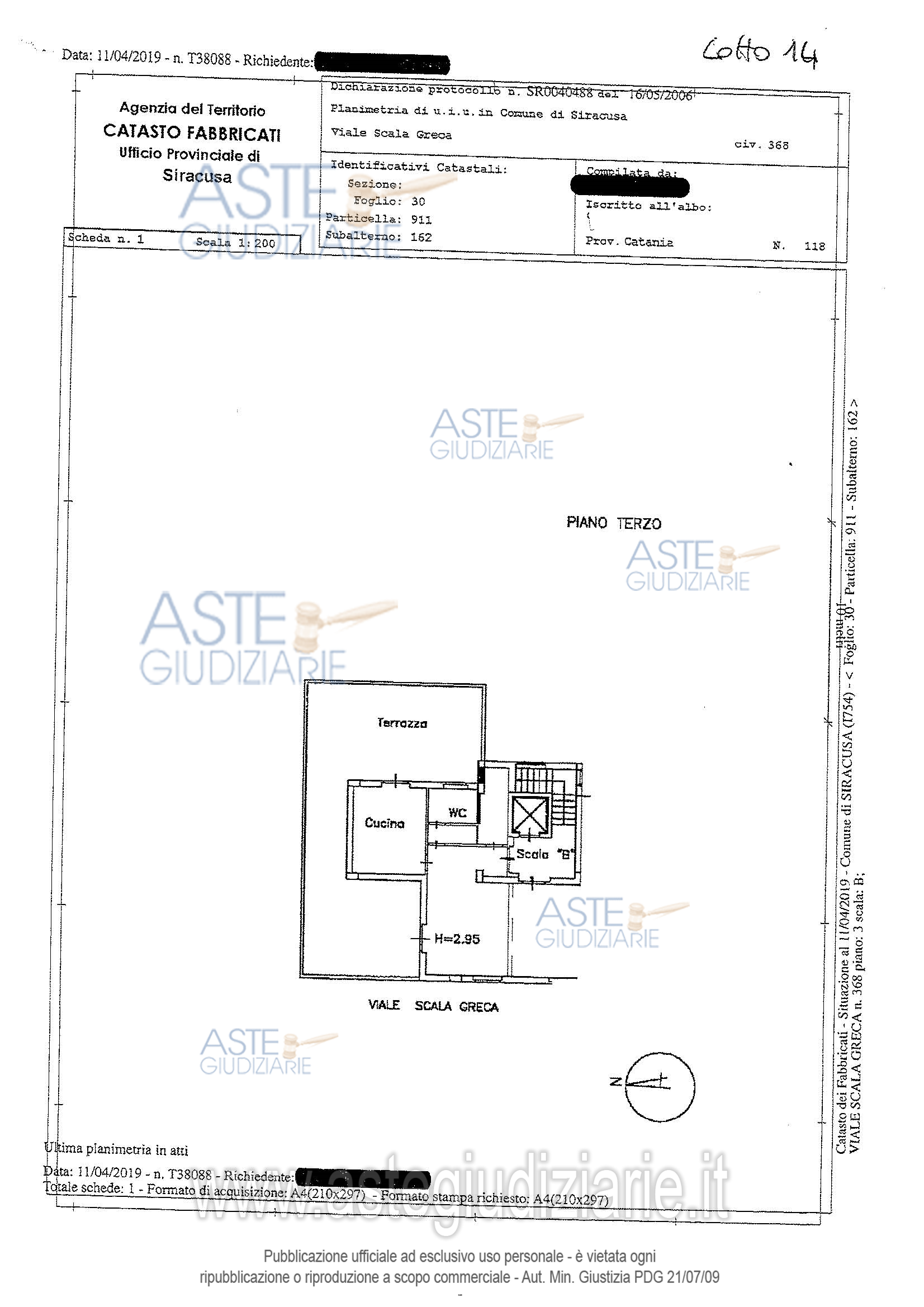 Vendita all'asta Competitiva, con gara telematica sincrona mista - LOTTO 14:  Piena proprietà dell’appartamento della superficie lorda di mq. 64 c.a, dotato di un terrazzo a livello esteso mq. 78 ca., sito in Siracusa, v.le Scala Greca n. 368/B, piano terzo, distinto al catasto fabbricati del Comune di Siracusa al fg. 30, p.lla 911 sub 162 (categoria A/2 di classe 2, consistenza 3,5 vani). Prezzo base € 84.750,00 (offerta minima € 84.750,00). Data vendita 12/11/2025 ore 10:00. Giudice Nicoletta Rusconi. Curatore Avv. Simona Matarazzo - Email "avv.simona.matarazzo@gmail.com"; Tel. 0931096234.  Rif. Tribunale di Siracusa - Fallimentare (nuovo rito) n. 46/2016