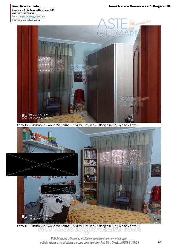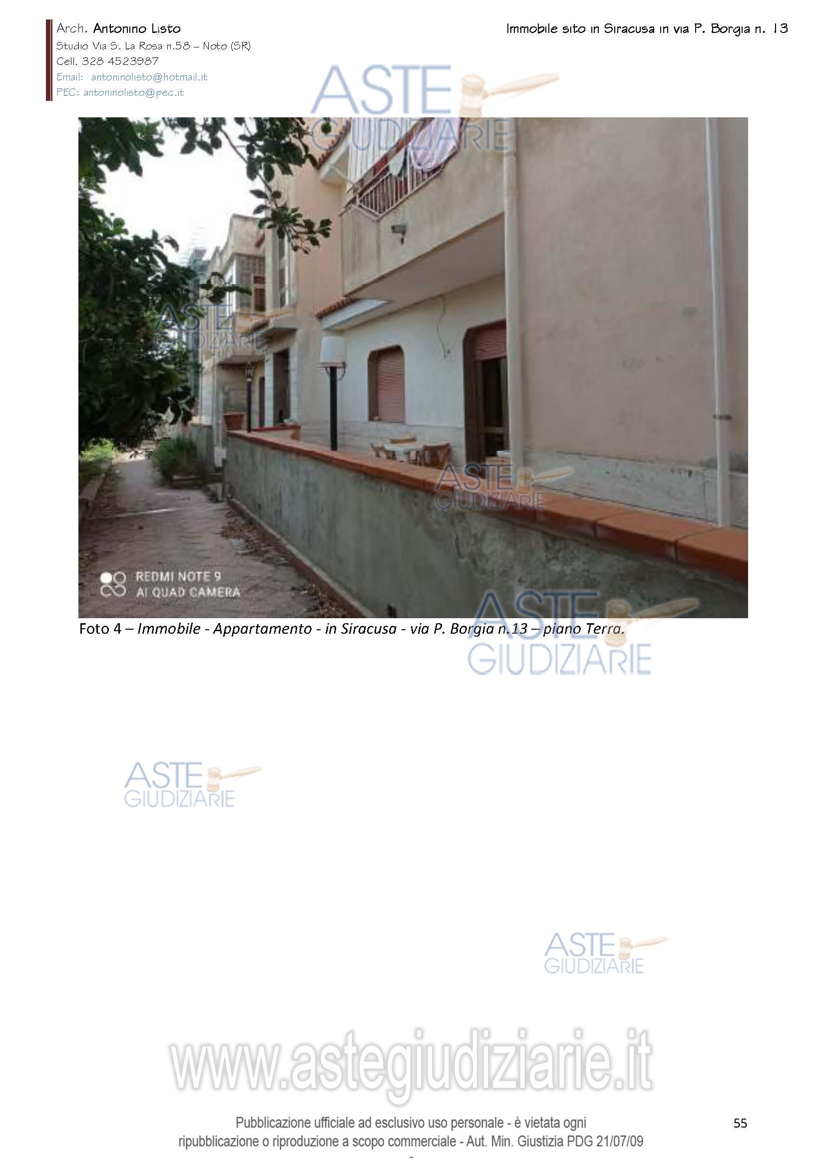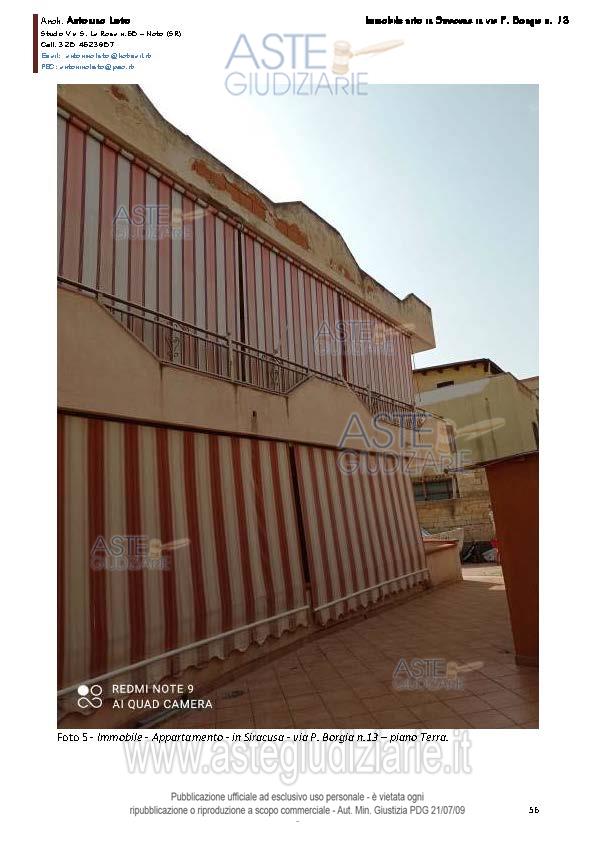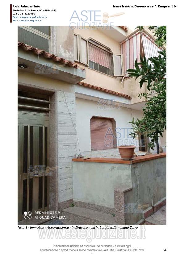 Vendita all'asta Senza incanto, con gara telematica sincrona mista - LOTTO UNICO: Immobile per la civile abitazione sito in Siracusa alla Via Borgia n. 13 - L'immobile è posto al piano terreno di un complesso di complessivi 4 appartamenti. Prezzo base € 57.164,10 (offerta minima € 42.873,10). Data vendita 12/12/2025 ore 09:00. Professionista delegato alla vendita Avv. Antonio Carpinteri - Email "avv.antoniocarpinteri@gmail.com"; Cell. 3515000728. Custode Giudiziario Avv. Antonio Carpinteri - Email "avv.antoniocarpinteri@gmail.com"; Cell. 3515000728. Rif. Tribunale di Siracusa - Esecuzione immobiliare post legge 80 n. 15/2020
